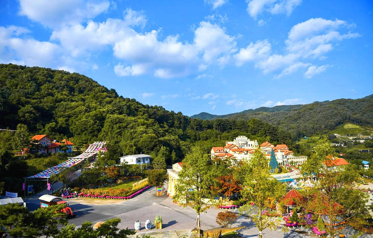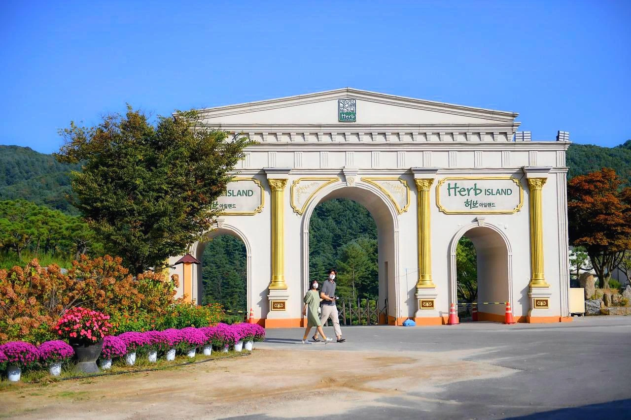 온통 산으로 둘러싸인 허브아일랜드 위로 푸른 가을 하늘이 빼꼼히 보인다. 살짝 뜨거운 가을볕에 지중해식 건축이 몽롱하게 보이는 건 이국적인 낯선 땅에 와 있는 듯한 느낌 때문인가. 허브 정원, 허브 식물박물관, 허브힐링센터... 일일이 열거할 만큼 기억력도 좋지 않지만 '어쨌든 완전히 허브나라에 들어왔습니다'... 하는 듯하다.