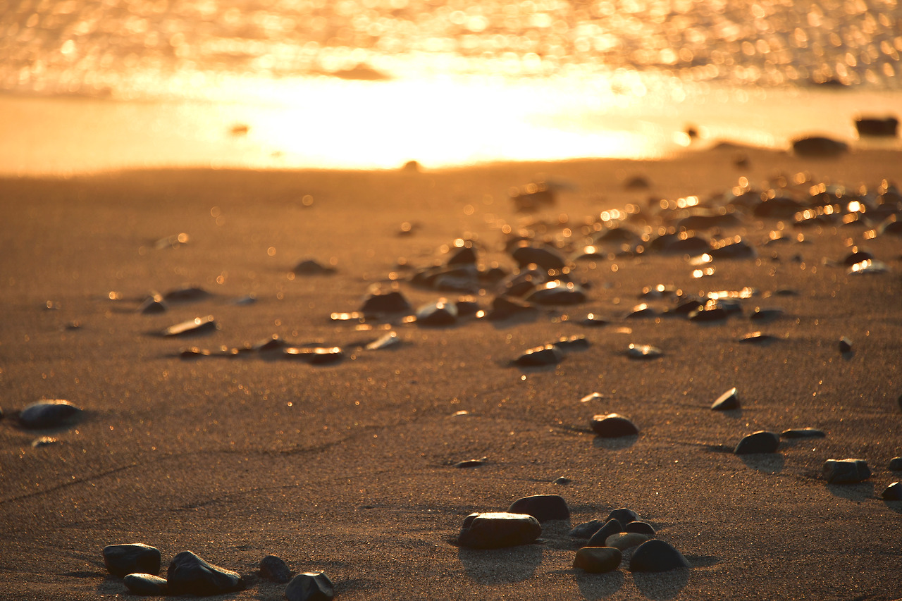 모래밭도 구르던 돌도 금빛으로 물들인다.