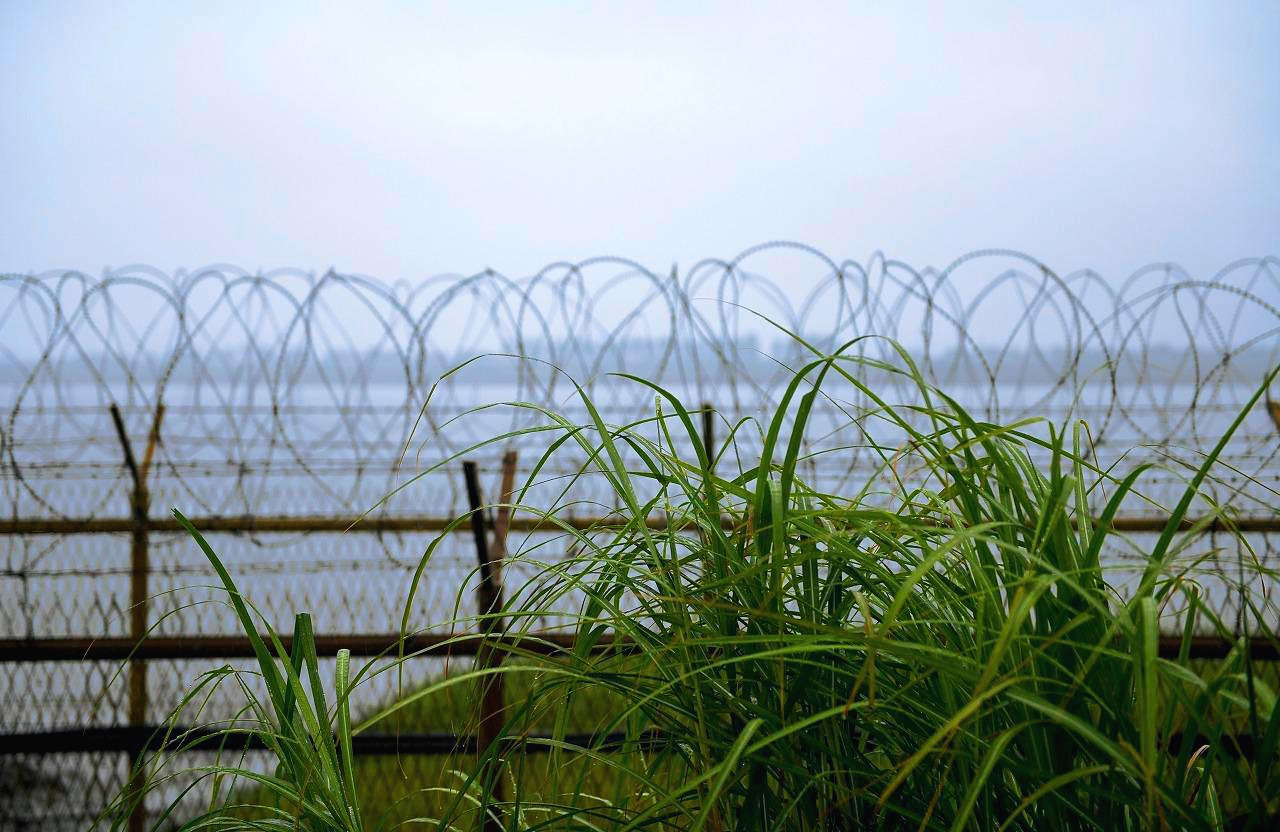 길게 이어진 철조망 너머로 안개비가 가득 고여 있다. 한강 하류다 보니 북녘과 가까워지는 곳이라 한강을 바라보는 그 앞엔 안타깝게도 철조망이 길게 가로막고 있다.