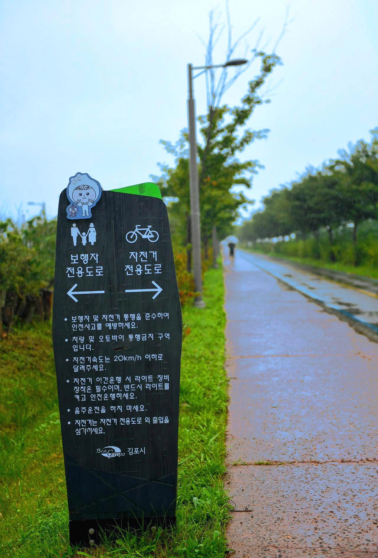 선선해지고 있는 요즈음 각자 걷기에 따라 1시간~2시간 정도의 산책을 즐길 수 있다. 비가 오는 날이거나 햇볕 좋고 구름이 이쁜 날이거나 언제나 걷기 명소다. 비는 내리지만 좀머 씨처럼 그 빗 속을 묵묵히 걷는 사람이 있다.