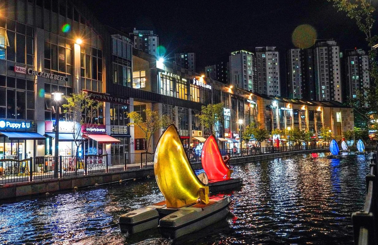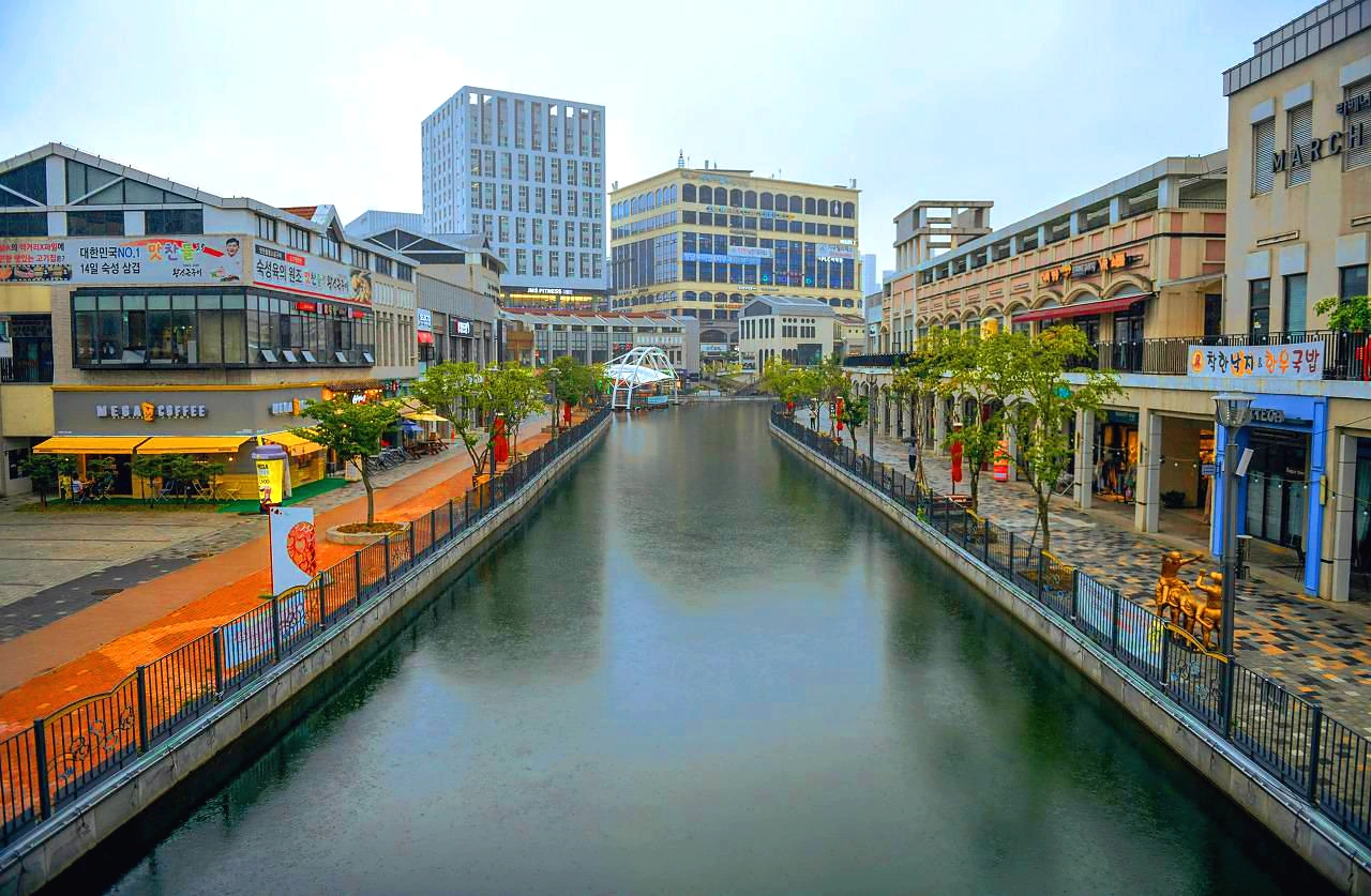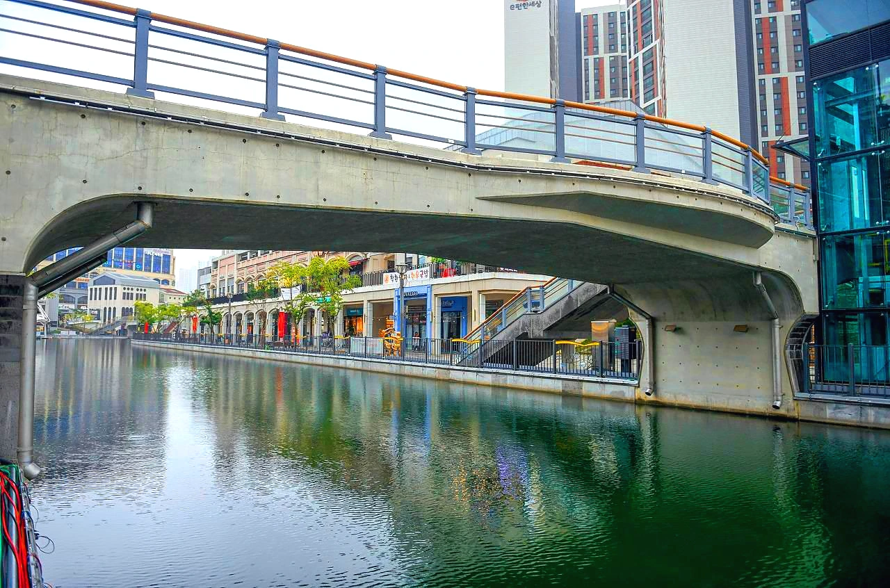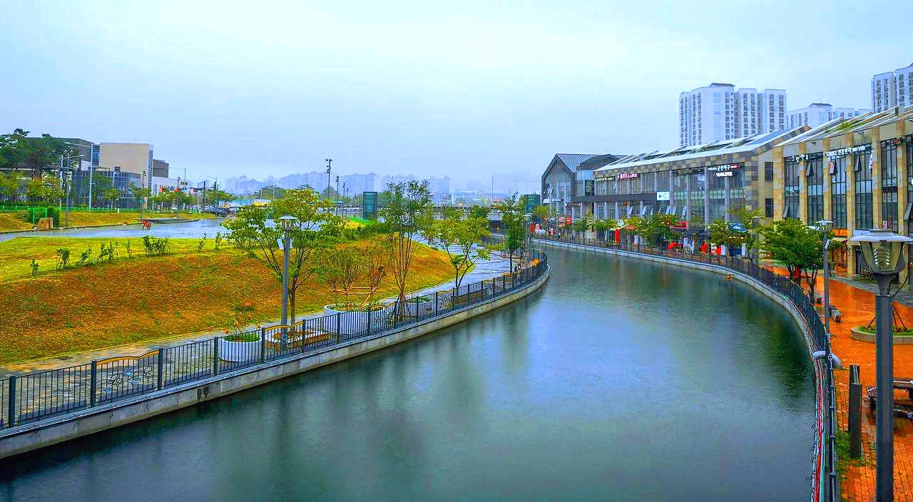 상가와 아파트 사이의 수로를 통해서 가끔 배가 다니는 이국적 정취의 작은 베니스를 꿈꾸었으나 비는 추적추적 뿌리고 거리는 한적하다. 어서 빨리 계획했던 대로 인프라가 갖추어진 명실상부한 명소로 거듭나야 할 텐데...