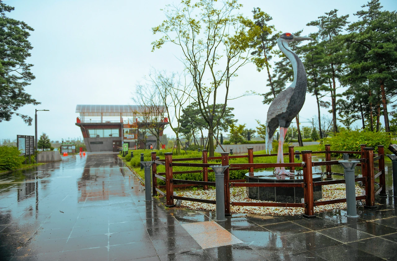 평소엔 기러기와 왜가리, 백로 저어새 등을 자주 볼 수 있다는데 비가 내리는 공원을 나는 새가 드물다. 산책길 둘레 안으로는 너른 들판 곳곳의 습지에는 조류는 물론이고 동식물이 서식하기 좋은 환경이어서 가까이 가면 고라니나 너구리와 같은 야생 동물을 관찰할 수가 있다고 한다. 동식물과 함께 사계절의 힐링을 즐길 만한 곳이다.