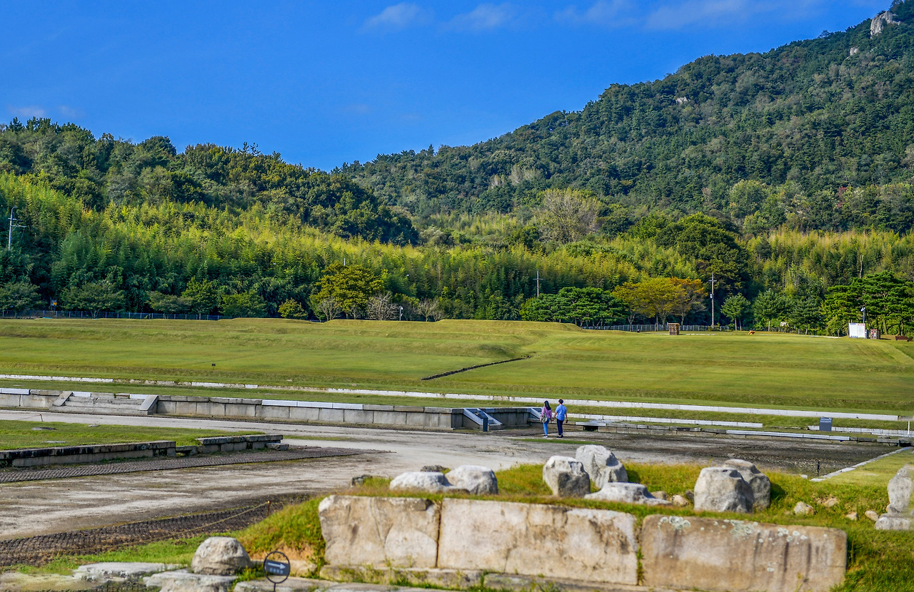 널찍널찍 한 터에 담긴 역사적 사실을 돌아보는 젊은 커플이 내 사진 속에 몇 번 담겼다. 집에 와서 사진을 정리하다가 보고서 유적지를 꼼꼼히 살피며 다니는 모습이 참 이쁘구나 하며 들여다보았다. 누군지 알아보기 어려울 것 같아서 이쁜 모습 그냥 올린다. 한적한 미륵사지 터를 돌며 데이트하는 모습이 보기만 해도 이쁘고 이쁘다. 우리 아들도 저런 데이트를 할까 하는 생각도 하면서... 백제 유적지의 풍경 속에서 그들만의 하루는 참 멋진 추억이 되었을 것 같다.