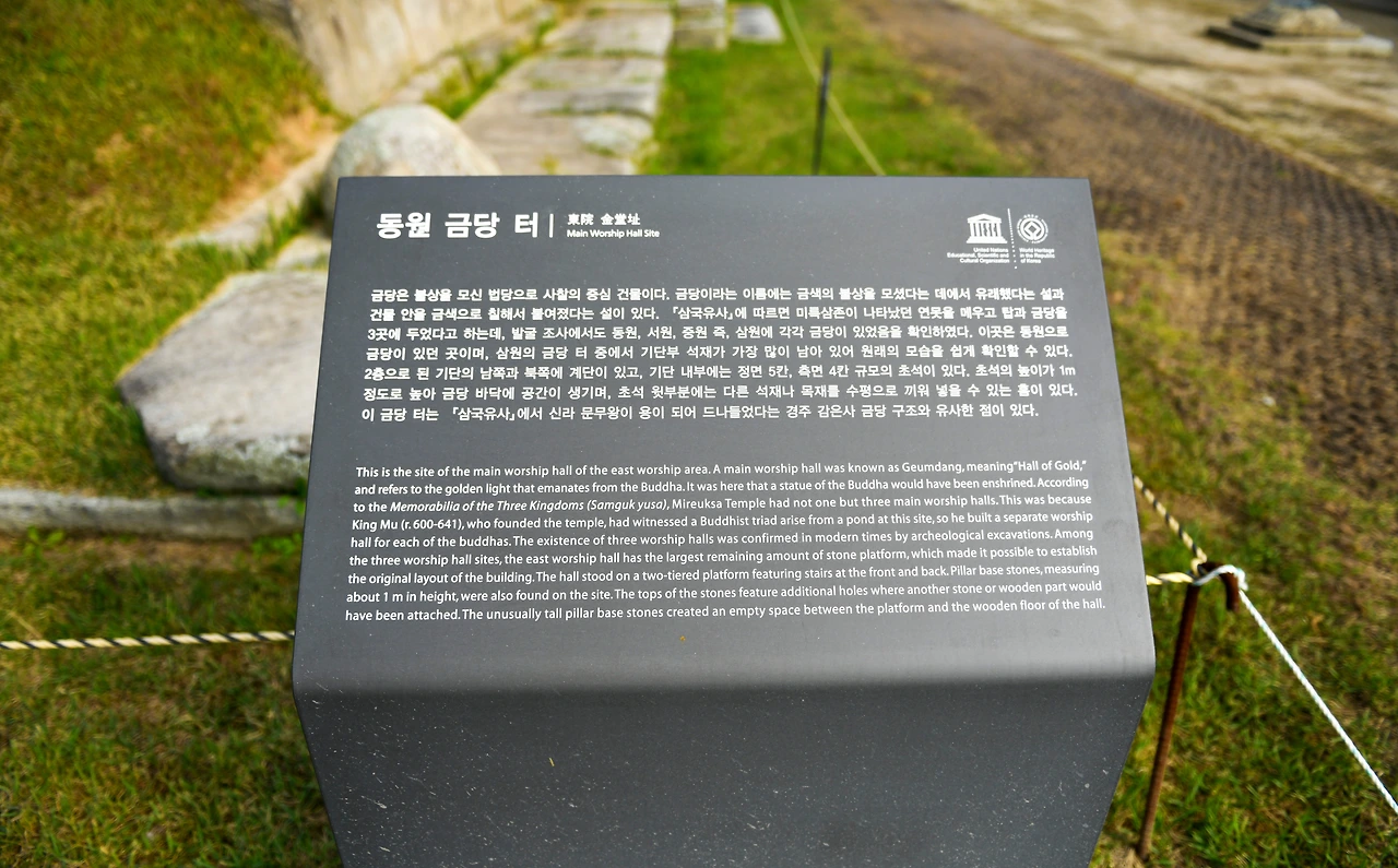 미륵사지 주변으로 큼직한 돌들이나 파편들이 몇 군데 자리를 잡고 있다. 석탑의 노반 덮기 돌이라고 한다. 동원 금당터가 있고 몇 군데 터마다 목탑이나 석탑이 있었지만 화재에 사라지기도 하고 지금은 이렇게 기단만 남아있는 상태다.