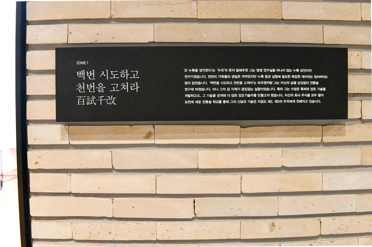 이제 그 과정들을 통해 만들어진 전통술을 빚어낸 우곡 배상면 선생의 양조 철학을 살피고 우리 술의 역사를 풀어낸 박물관의 전시관을 둘러보면 된다. 술 문화의 면면을 살피는 시간이다.