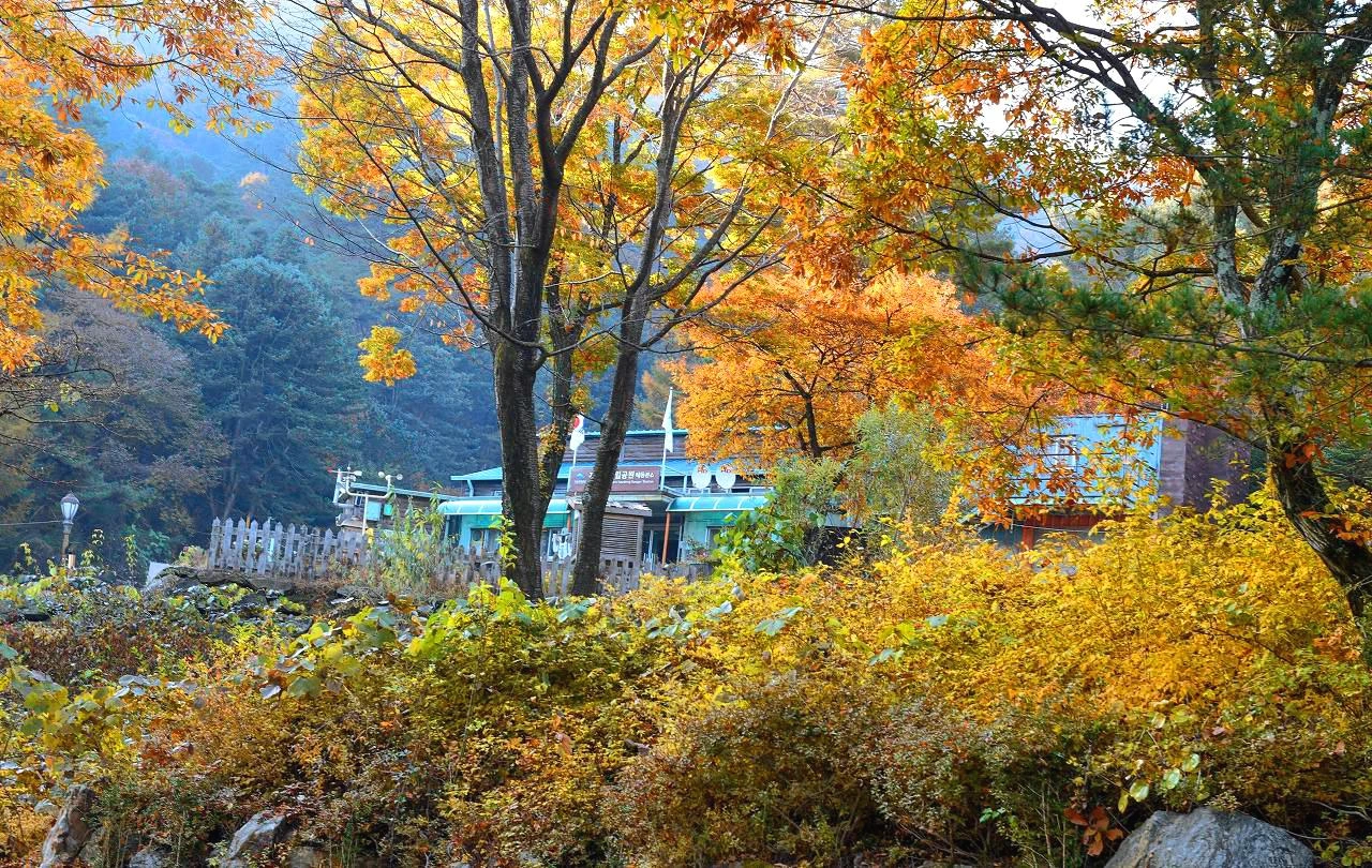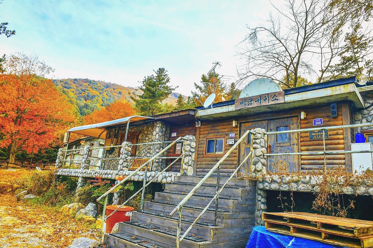 완연한 가을색으로 둘러싸여 있다. 숲 사이로 빛내림이 신비롭다. 비담대피소 옆으로 캠핑장에는 밤사이 이슬을 맞은 두어 개의 텐트가 아침을 맞고 있다.