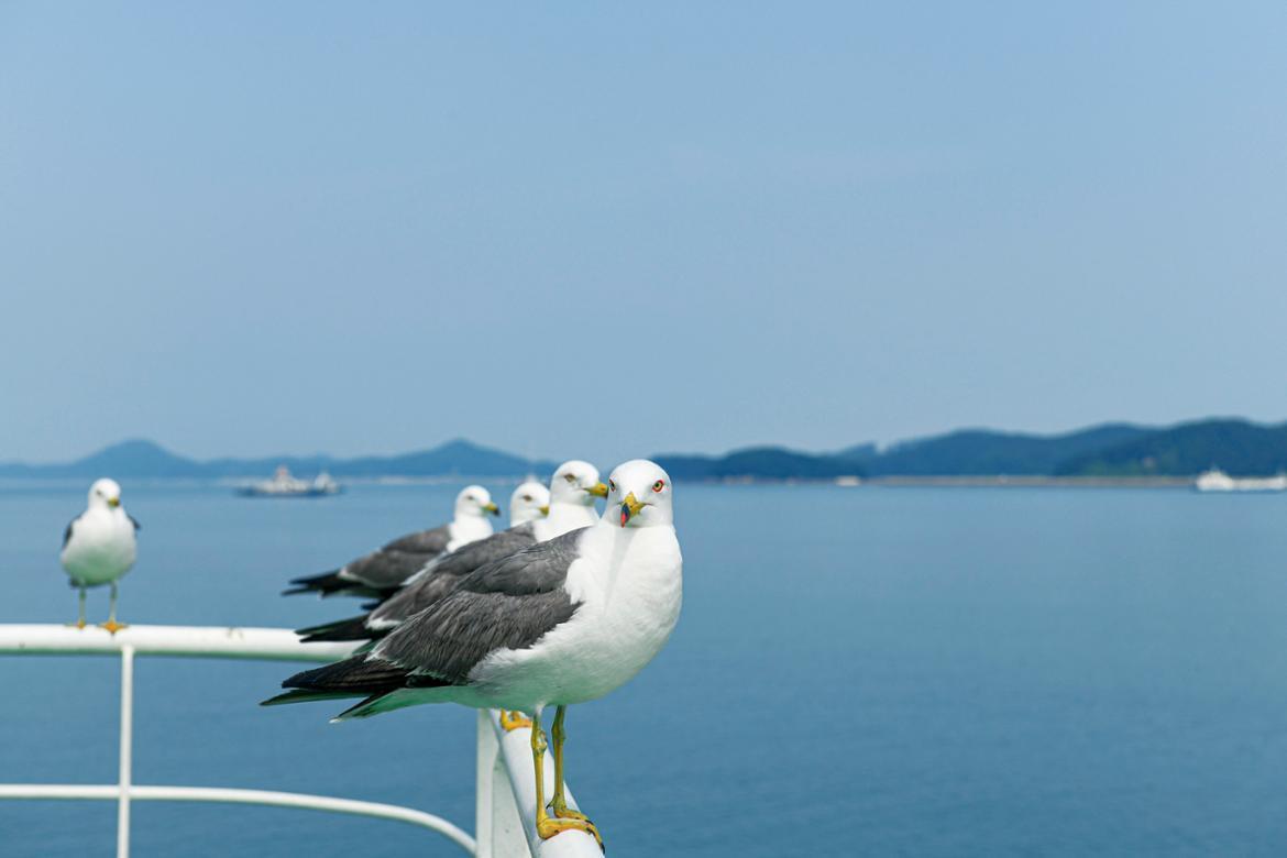 인천시 영종도 삼목 선착장에서 출발하는 장봉도행 여객선으로 10분이면 도착한다. 선착장에 서서 크게 호흡하며 바다내음에 설렌다. 이미 감성 자극이다. 뱃전에서 일제히 날아오르는 갈매기떼와 잠깐 노니는 사이 신도 선착장에 배가 닿는다.