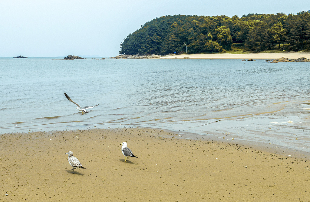 이젠 몇 송이 남지 않은 해당화 꽃길에 서니 ‘Modo’라는 영문체의 선명한 빨강 조형물이 눈에 확 뜨인다. 푸른 하늘과 빨간색 글자 옆의 작은 정자가 각자의 존재감으로 잘 어우러진다. 그 풍경 속으로 오가는 젊은 커플의 그림 같은 모습은 더 말해 뭣하랴. 영종도 공항이 가까워 가끔 머리 위로 잠자리처럼 비행기가 날아간다. 손에 잡힐 듯 가까이서 보이는 비행기의 은빛 날개를 향해 먼 곳에의 그리움을 실어본다. 이곳은 섬 모양이 박쥐를 닮았다는 박주기 해변이다.