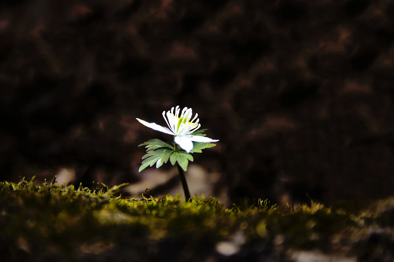 바람꽃이 고개를 들고 하늘을 올려다본다