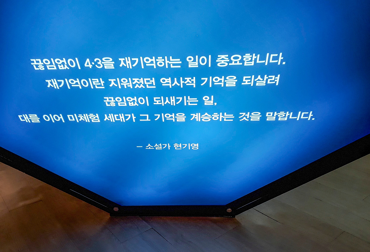 당시 4·3 사건 희생자들을 기리기 위한 곳, 4·3 평화공원 안에는 제주 4·3 평화기념관을 비롯해서 위령제단, 위령탑, 봉안관이 있다. 방문객들은 이곳에서 희생자들에 대한 참배를 한다. 공원을 조금만 돌아보아도 당시의 비극적 참상이 온몸으로 전해진다. 그분들의 처절한 삶을 위로하고 기리도록 공원의 외부와 내부 모두 공들여 마련된 느낌을 준다. 잔혹했던 그날의 아픔을 기억하기 위한 공간이다.