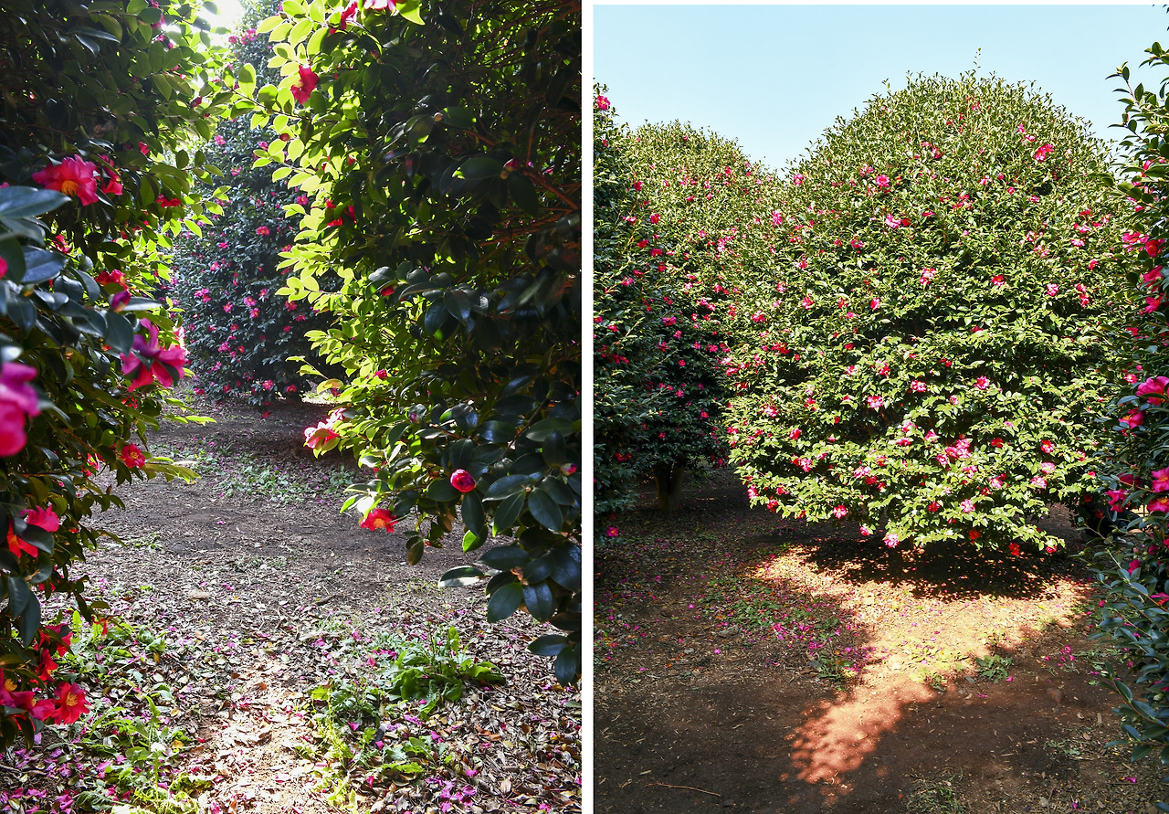 제주의 겨울은 동백꽃이 한몫한다. 남원의 위미리는 제주의 동백 명소다. 위미리 동백군락지는 제주도 기념물로 지정된 곳으로 우리 고유의 동백나무가 자라고 있다. 한라산의 동백 씨앗을 받아다 이곳에서 키운 토종 동백으로 사유지이다. 동백 수목원의 사탕 모양으로 잘 가꾸어진 동그란 꽃나무와는 달리 자연스러운 수형의 동백나무다.