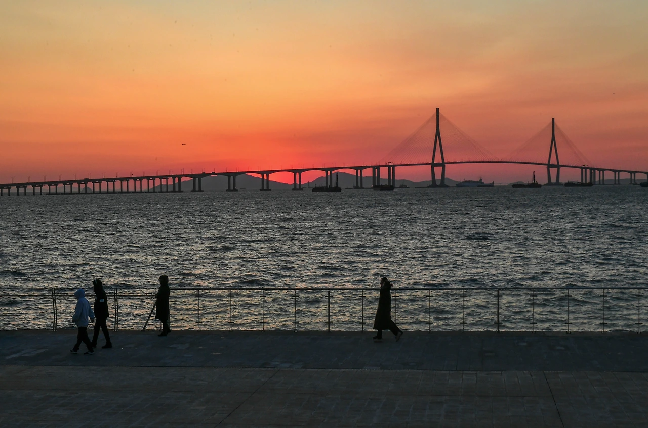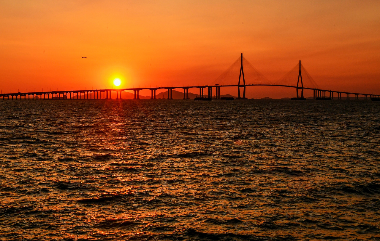뉘엿뉘엿 해가 저무는 듯하더니 이윽고 바다 저편 하늘 색감이 서서히 달라지기 시작한다. 인천대교를 배경으로 빠르게 일몰이 지고 있었다. 서해바다를 물들이며 길게 바다 위로 해그림자가 반짝인다. 붉은 노을이 웅장한 서해대교와 멋지게 어우러진다. 노을 속으로 새가 날아가고 비행기가 지나간다.