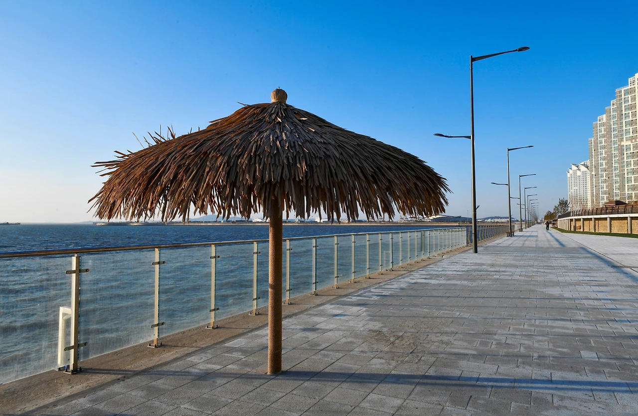 방파제와 산책길의 높이를 맞추어 시공하여 바다가 바로 산책길 옆이다. 방파제나 안전펜스로 바다가 멀찍이 떨어져 있지도 않다는 사실이다. 바다를 향한 시야를 방해하지 않도록 투명판 난간설치의 센스 또한 돋보인다. 철썩이는 파도소리의 시원함도 잔잔한 물결의 찰랑임도 들으며 걷는다. 바로 코앞에 바다를 두고 걷는 맛을 생생히 실감한다.