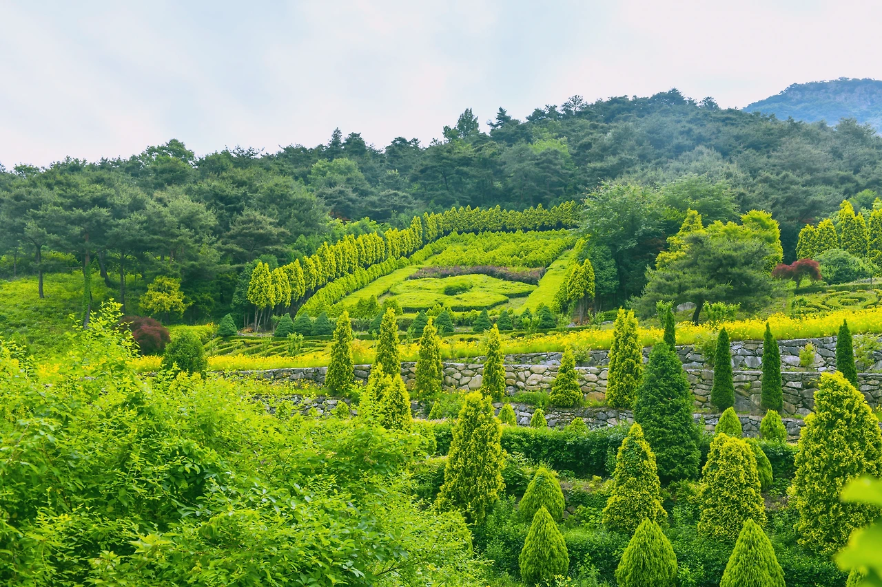 입구를 지나 문 안에 들면 왼쪽 옆으로 곧바로 나타나는 무궁화 테마 식물원, 아직 철이 아니어서 피어나진 않았지만 우리나라 최대의 무궁화 생태공원이라고 한다. 주변 숲을 비롯해서 다양한 수목과 꽃들이 잘 관리되어 있어서 볼만하다. 완주는 2010년 무궁화 테마도시로 선정되기도 했으면 무수한 품종의 무궁화를 보유하고 있다. 산림청 공모의 나라꽃 무궁화 전국축제에서 5회나 대상지로 선정되었다 하니 무궁화 필 무렵(7~10월)에 오면 나라꽃 무궁화의 멋을 한껏 볼 수 있겠다.