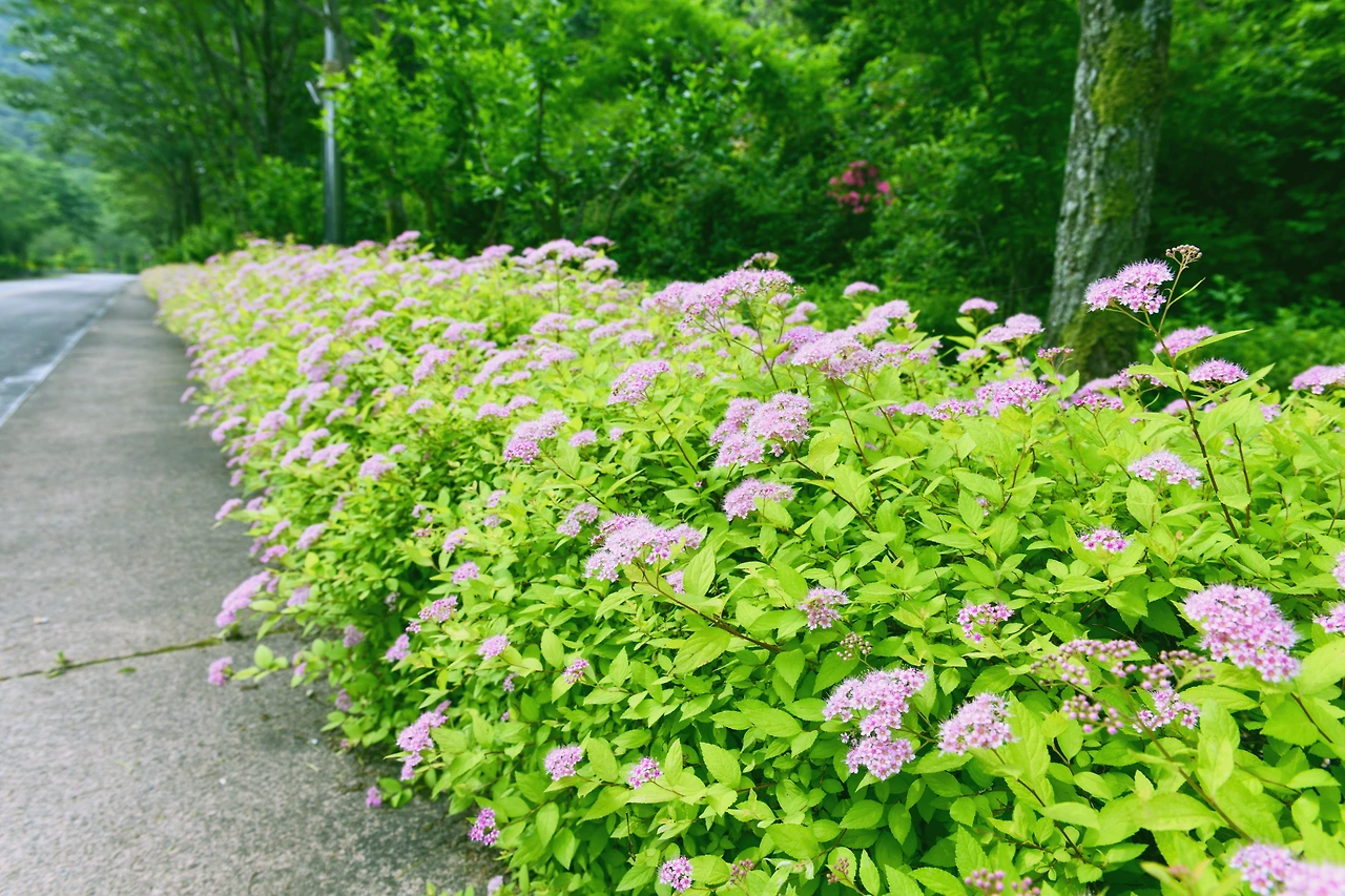 고산자연휴양림은 전북 완주군 고산면 오산리에 위치하고 있다. 도로에서 정문에 이르기까지의 길이 제법 길다. 무리 지어 피어난 초여름 꽃이 반긴다.