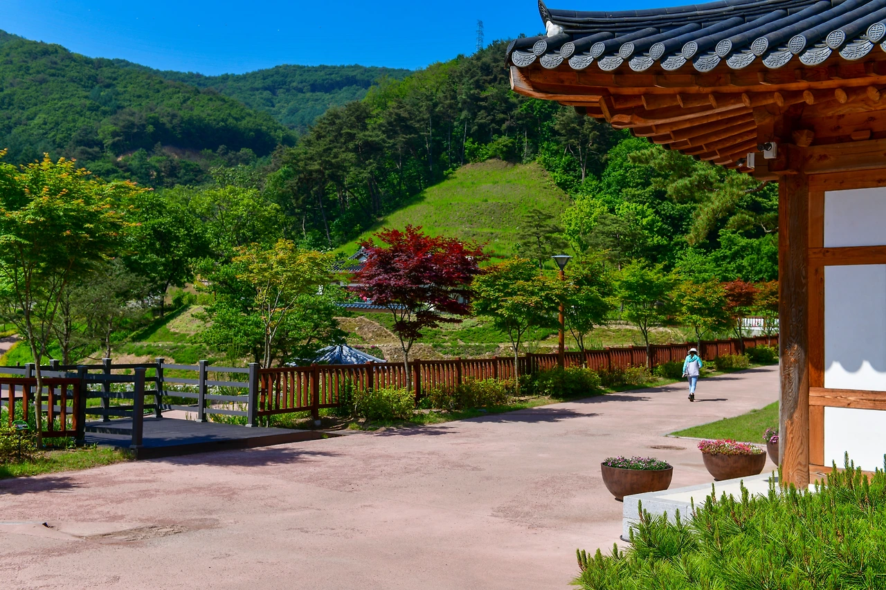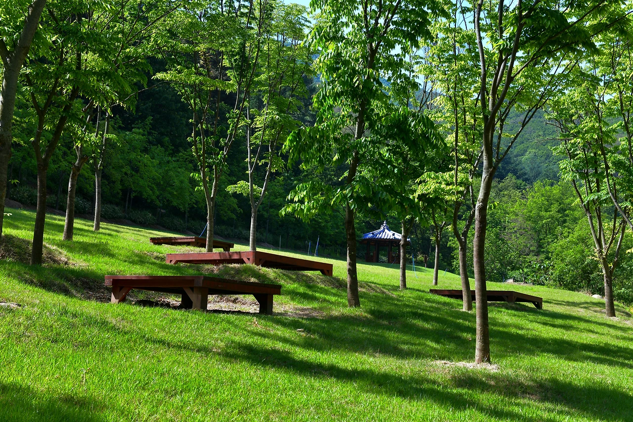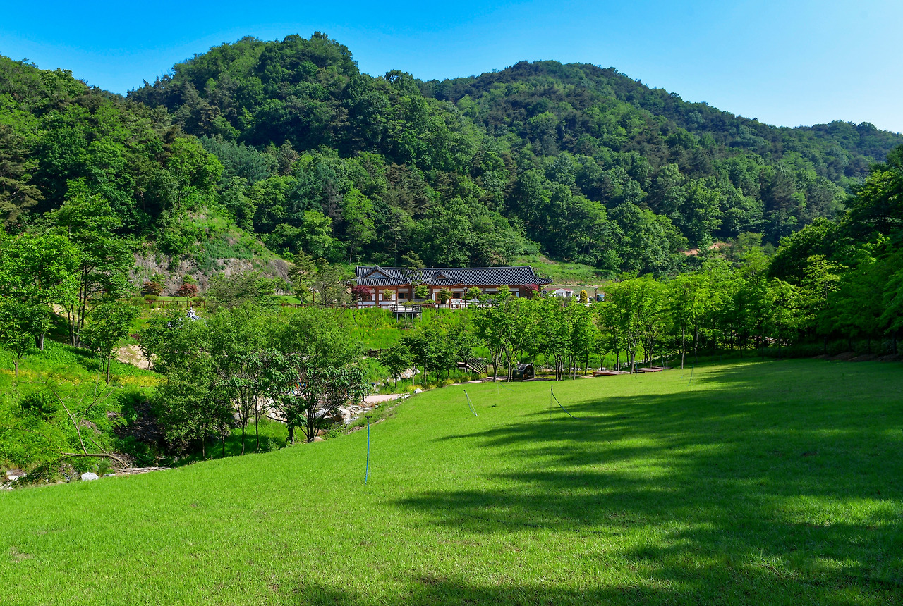 치유의 숲에는 입구의 전통 한옥 힐링비채와 마주 보는 산에 위치한 숯채화효소원 두 동의 건물이 보인다. 그리고 4경로의 치유숲길은 물소리맑음숲길700m(청각), 마음치유숲길1,2km(촉각), 숲내음숲길1.5km(후각), 하늘맑음숲길2.8km(시각)로 이어졌다. 단아한 한옥 힐링 비채는 건강치유센터다. 숯체화효소원의 숯온열치유실은 물론이고 세미나실을 이용한 자연과 함께 몸과 마음의 치유를 할 수 있도록 두 군데 모두 다양한 준비가 되어있다. 누구나 신청만 하면 참여할 수 있는 생활밀착형 산림치유 프로그램이 진행된다.