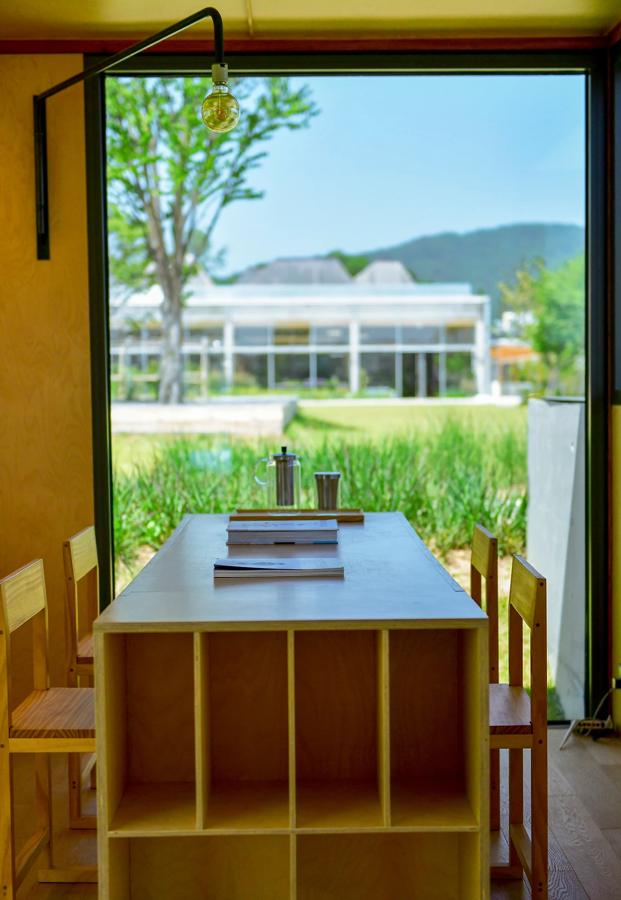 스마트팜 바로 옆 라운지엔 기프트샵과 소바레스토랑이 연결된다. 농사에 필요한 갖가지 농기구와 장바구니가 얼른 집어 들고 싶게 이쁘다. 텃밭을 가꾸고 가족들이 먹을 식재료를 담을 도구들을 보며 작게나마 농사를 짓고 싶은 충동이 인다. 식물이 자라는 것이 인테리어가 되고 창밖 수(水)공간을 내다보며 식사를 할 수 있는 소바공방의 냄새도 잘 어우러진다. 공방 창 너머로는 물을 가득 채워 하늘이 담기고 초록의 나무가 담긴 풍경이 눈앞에 있다. 은은하게 물속에 담긴 자연이 또 다른 힐링을 불러온다.