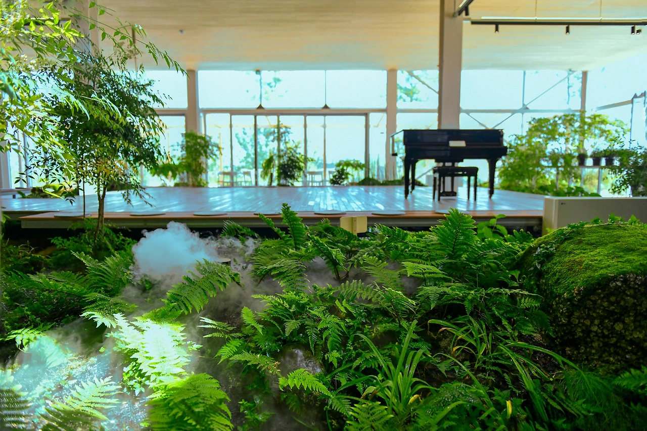 스템가든은 자연을 내부로 들였다. 물이 흐르고 물이 떨어지고 갖가지 식물들이 자라난다. 식물들 사이로 데크가 가로지르고 꽃이 피어있는 작은 언덕 옆 무대엔 그랜드 피아노가 놓여있다. 한 공간 안에 다양한 콘셉트의 공간이 자리했고 이동하는 동선 또한 매력적이다. 이곳에서 자란 예쁘고 깨끗한 채소와 식재료가 브런치 메뉴나 디저트가 되고 근사한 한 끼 식사를 할 수 있다.