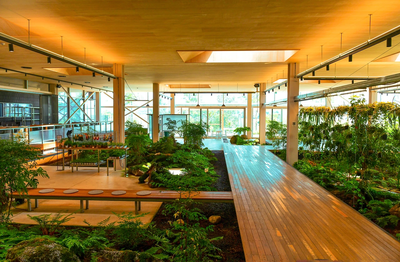 수(水)공간 밑으로 위치한 스템가든이야말로 이게 뭘까 하며 살피게 되는 놀라운 공간이다. 안으로 들면서 확 풍겨오는 냄새가 흙냄새와 이끼냄새인가 싶기도 하다. 식물이 가득 차 있으니 당연히 풀냄새가 진동한다. 그리고 나무 향까지. 그야말로 자연의 냄새만으로 가득 찬 공간이다.