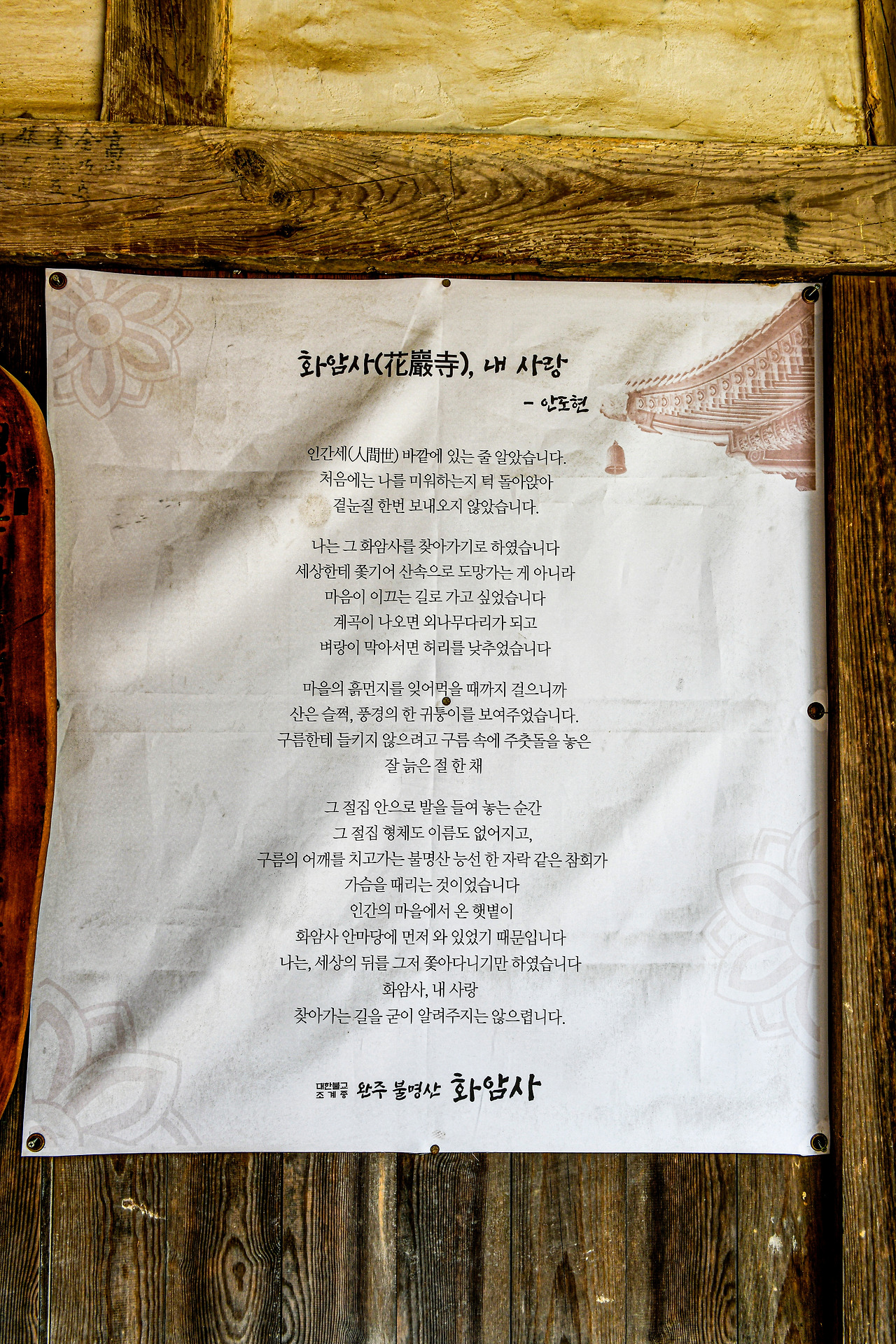 안도현 시인은 <화암사, 내 사랑>이란 시에서 '찾아가는 길을 굳이 알려 주지는 않으렵니다.' 하면서 끝을 맺는다.