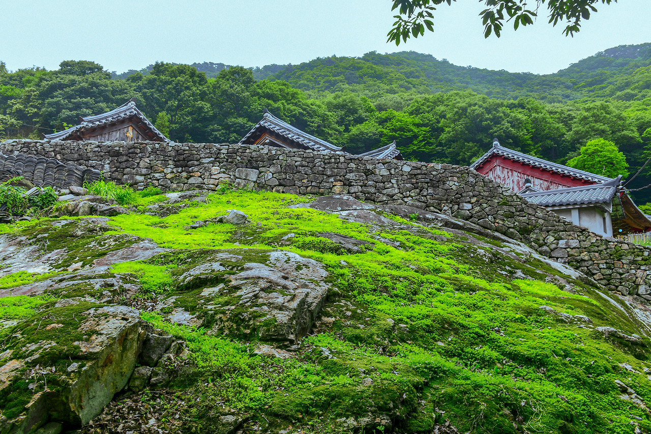 좁다란 숲길이 온통 풀섶이거나 오래된 나무들이 울창해서 밀림인 듯 착각하게 하는 포인트가 간간이 나타난다. 물론 급경사의 험한 코스와 너덜길도 있지만 이럴 땐 수행하듯 조심히 걸으면 된다. 골짜기의 물소리와 절로 생겨난 작은 폭포를 지나 숲 사이로 화암사가 보이기 시작한다.