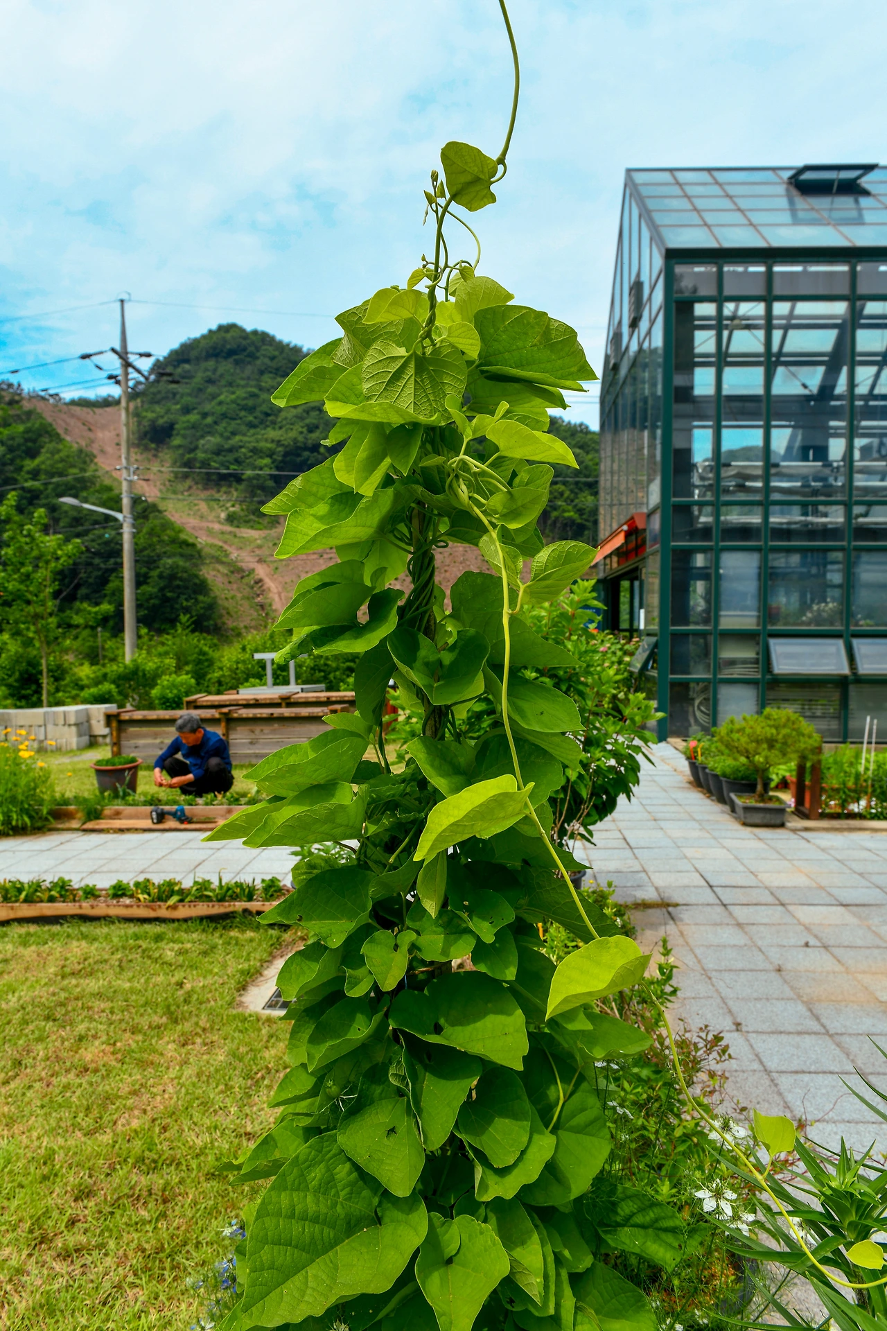 완주 생태관광 싱그랭이 에코 정원은 주변 들판과 언덕에서 자라고 있는 야생화가 자연스럽다. 정원 양옆으로 자리 잡은 두 개의 온실은 천정까지 온통 유리로 둘러싸였다. 자그마한 다육이와 꽃을 피운 화분들. 그리고 풀인 듯 자연스러운 식물들과 다양한 모양의 석부작들이 가득하다. 다른 쪽 공간은 씨를 파종하여 키워내는 육묘장이다. 도심에서 자라는 식물들과는 확연히 다른 느낌이다. 마을 사랑을 실천하는 주민들과 싱그랭이 요동마을 생태활동가의 땀과 노력이 엿보인다. 산골 정원에서 자라는 식물들의 생명의 신비함과 함께 자연 사랑이 뭔지 이곳에서 느껴본다.