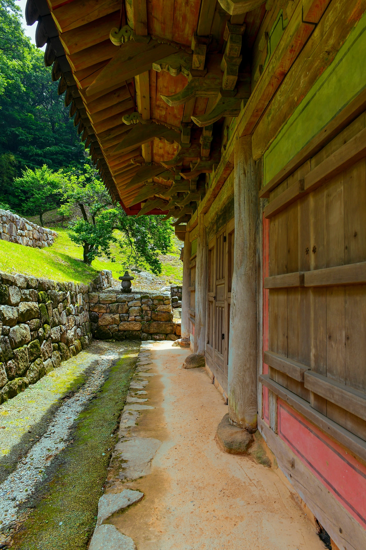 고적하기만 한 누마루 너머 틈으로 푸르른 신록을 내다볼 수 있으니 이보다 더 바랄게 또 무언가 싶은 순간이다. 우리나라 단 하나뿐인 아앙식 구조 건물 극락전 뜰에 털썩 걸터앉아 숲에 파묻힌 화암사를 내다보니 아, 좋다 라는 말이 절로 터져 나온다.