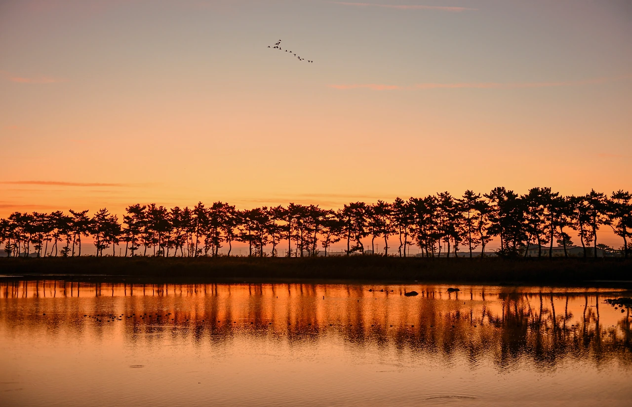 계화리 마을은 여느 시골과 다름없이 소박하다. 들어서자마자 바다를 막은 둑을 따라 길게 늘어선 소나무 행렬이 잔잔한 반영을 이루며 맞는다. 간척지와 마을 사이의 좁고 긴 물길의 계화조류지는 1㎞에 이르는 방풍림 소나무를 품었다. 언제나 온갖 철새들이 쉬어가는 곳이다. 검푸른 새벽하늘의 구름과 수면 위로는 물결의 잔상이 신비롭다. 마을을 마주 보는 방죽의 고요함으로 차분해진다.
