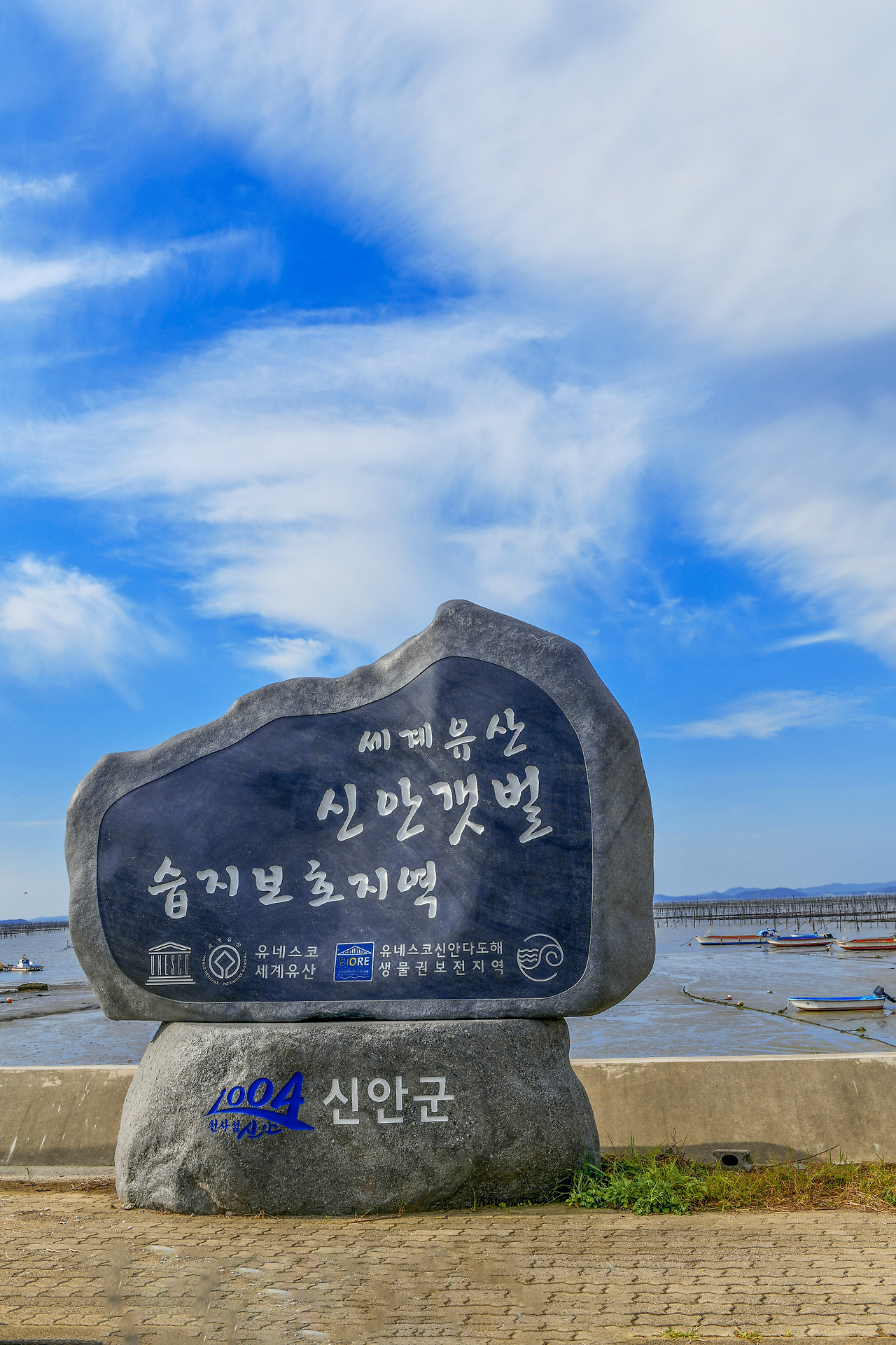 목포에서 신안 압해도를 잇는 압해대교를 건너면 신안갯벌 세계유산 등재라는 묵직한 석재 안내판이 맞아준다. 길 양옆의 바다는 드넓은 갯벌을 이룬다. 습지보호지역으로 보호받고 있는 끝없는 갯벌을 내려다보는 겨울 하늘이 푸르다.