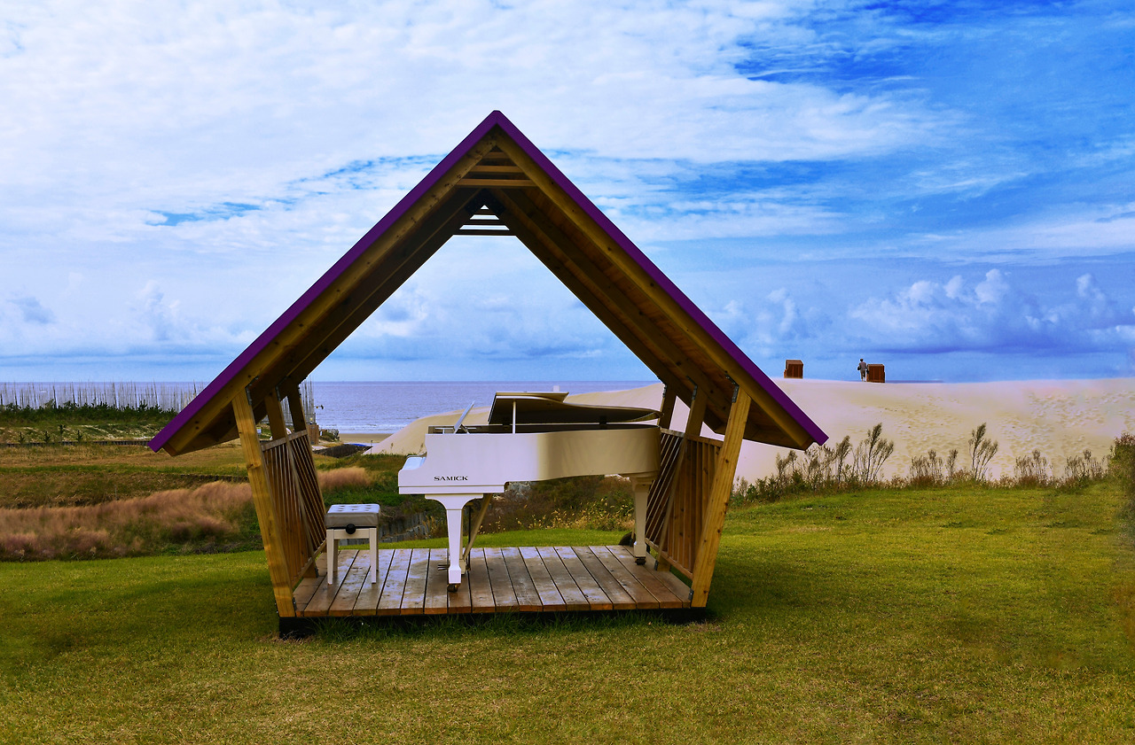 섬을 느끼고 섬의 질감을 누리는 일은 역시 바다가 아닌가. 해변으로 나가는 길에 높은 모래 언덕이 눈앞을 막는다. 고운 모래에 밀리며 느려지는 발걸음이 오히려 마음을 느긋하게 해 준다. 모래섬 언덕 위에 얹힌 피아노가 푸른 바다의 파도와 하늘과의 어우러짐으로 멋스럽다. 낮은 무음과도 같은 바람과 섬에 흐르는 피아노 선율을 마음속으로 그리며 헝클어진 머릿속을 헹궈내는 일, 해변의 고둥조형물이 자연스러운 바로 여기가 최적이다.