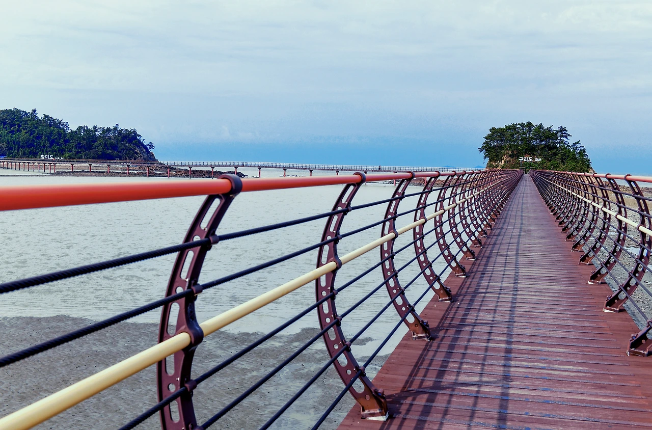 다리 입구 안내석에 ‘Ponte dell Infinito’라 새겨져 있듯이 섬의 무한한 가치와 가능성을 염두에 두었다는 이름이다. 스위스 출신의 세계적인 건축가 마리오 보타와 박은선 작가의 협업으로 만들어졌다. 다리 위를 걷는 이를 양옆에서 둥글게 감싸주는 듯한 곡선의 난간이 독특하다. 구리섬과 할미도까지 천천히 걸어도 20분 남짓이어서 바다 위를 걷는 산책코스로 적당하다.