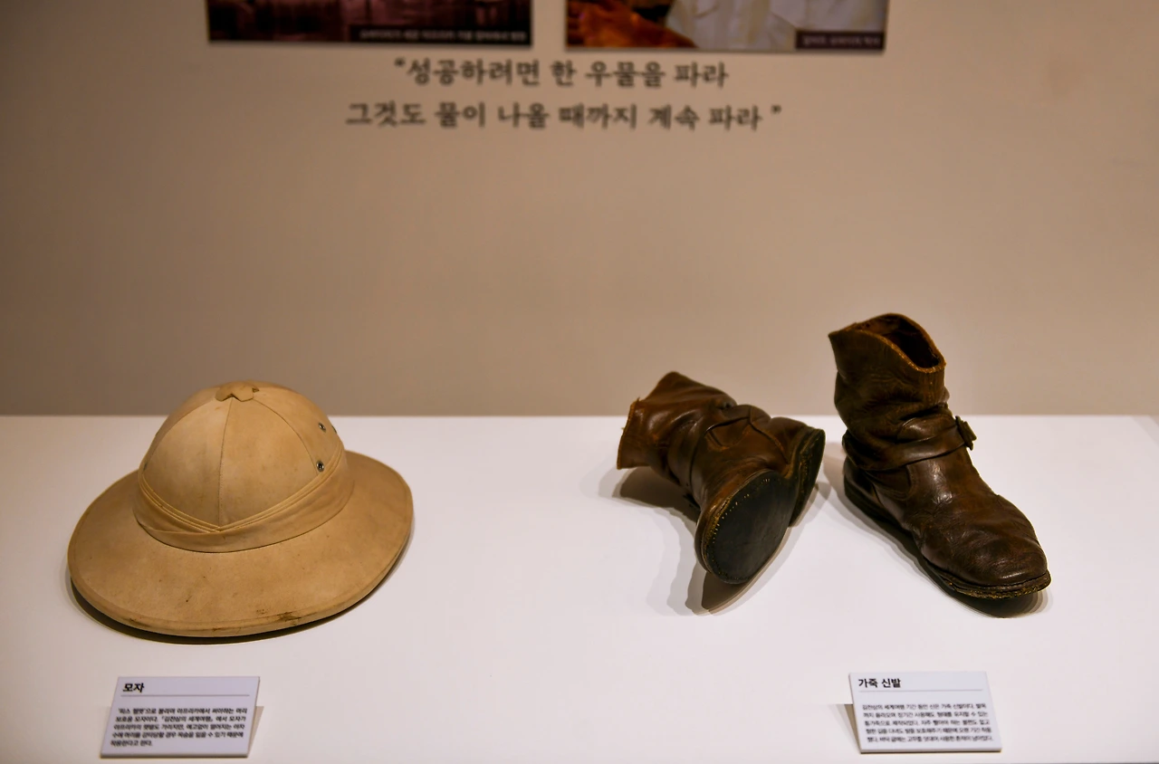 전시관에서 특히 김교수와 늘 함께 했던 낡는 배낭과 모자와 신발은 보는 이들에게 여행을 향한 강한 전율을 느끼게 한다. 마르코폴로와 슈바이처를 사랑한 그는 여정 중에 슈바이처박사도 만난다. 여행 중 굶주리다시피 해도 무한한 힘이 솟구치는 것은 매양 새로운 나라 사람들과 자연을 보는 기쁨이 둘도 없는 영양제이기 때문이라고 말한다.