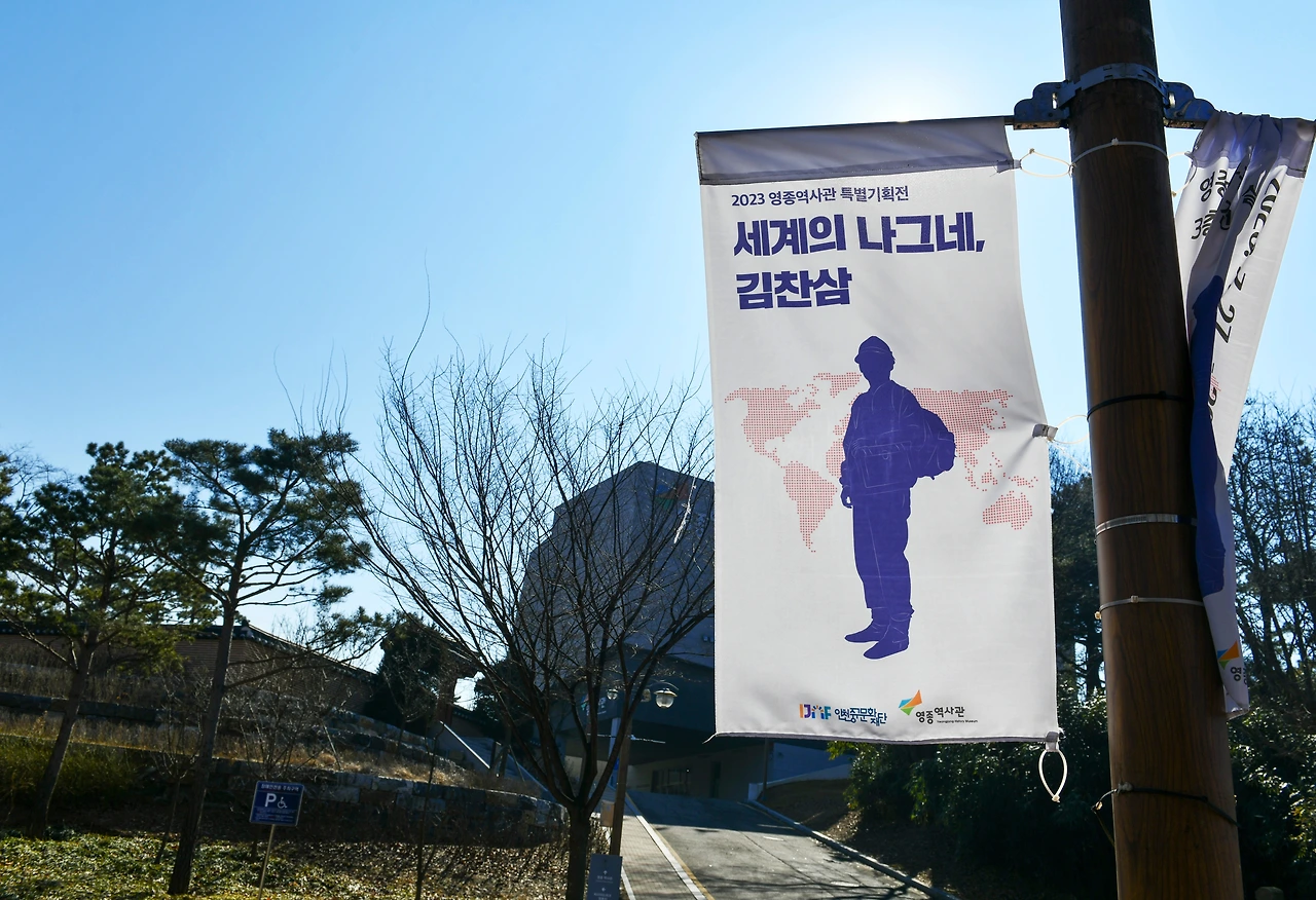 영종도는 김찬삼 교수에게 특별한 곳이다. 세계여행가 김찬삼교수의 여행책은 당시 손꼽히는 베스트셀러였다. 그 시절 웬만한 집의 책꽂이에는 김찬삼의 세계여행전집이 있었다. 인천인인 그는 책의 인세로 영종도 구읍나루터 인근 바다 언덕에 터를 마련했다. 이곳에서 휴식을 하고 여행원고 집필에 몰두했다. 또한 여행문화원과 여행도서관을 개관하기에 이른다. 더 많은 이들에게 세계여행의 꿈과 희망을 불어넣어 주고픈 마음이었다.