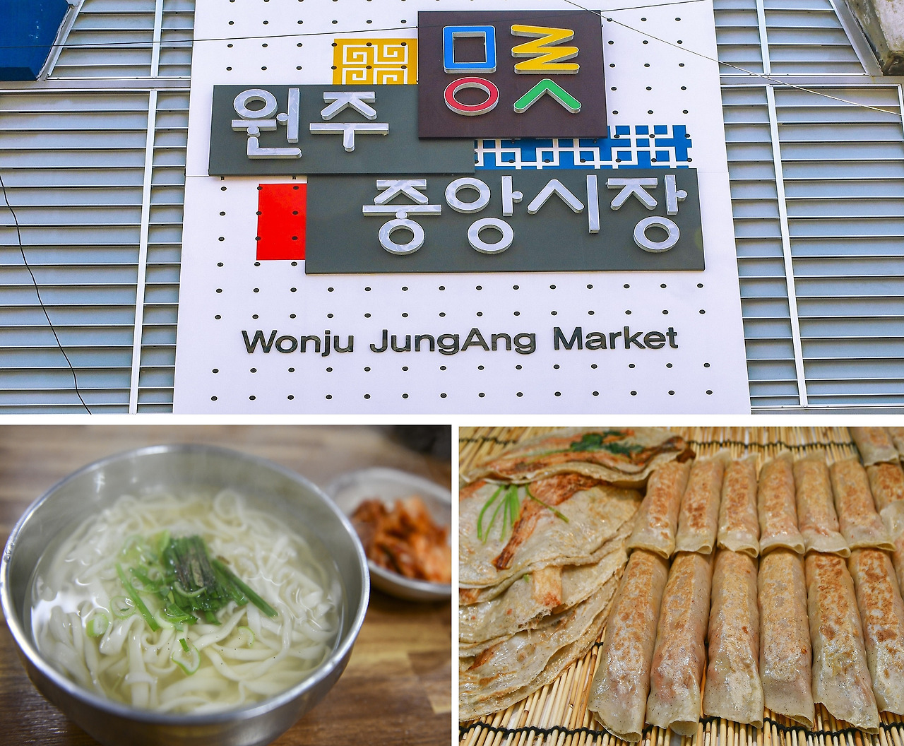 원주가 큰 도시는 아니지만 군데군데 시장이 많다. 60년 역사를 지닌 전통시장인 중앙시장은 지역을 상징하는 공간이기도 하다. 시내를 돌아보며 언제든 어느 시장이든 들를 수 있는 위치여서 장보기도 하면서 시장통의 군것질하는 즐거움도 얻을 수 있다. 요즘은 백종원의 골목식당으로 알려진 착한 칼국수와 팥죽은 5,000~7,000원이라는 가성비로 인기다.