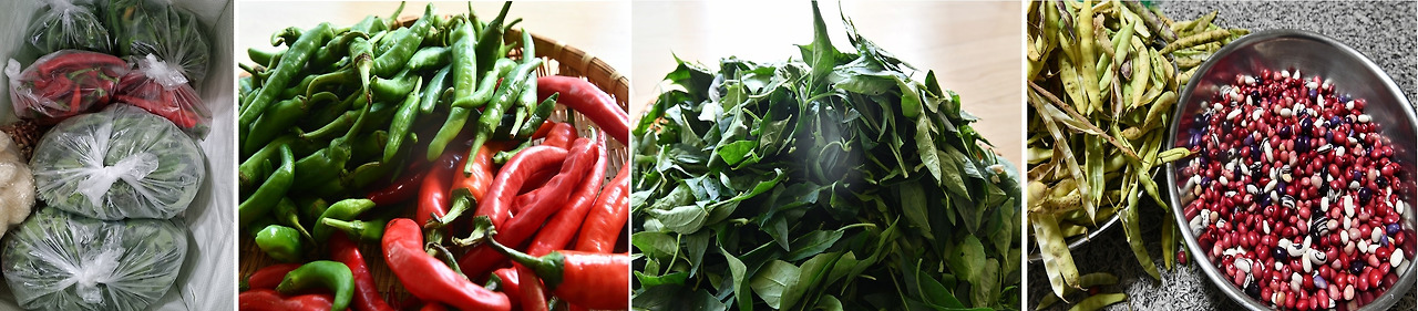 강남 한 복판에서 만난 친구가 고모네 밭에 가서 따왔다는 청.홍 고추, 고춧잎 딴것 한봉다리와 함께 힘들게 바리바리 담아왔다. 진심 어린 보따리에 감동... 맛있는 콩이랑 청국장 사이트 정보까지. 커피와 생강가루도 있었다. 덕분에 한 동안 잘 먹었다.