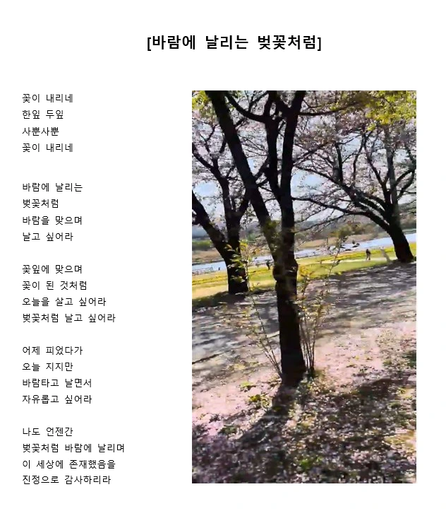 바람에 날리는 벚꽃처럼 자유의 꿈을 꿉니다.