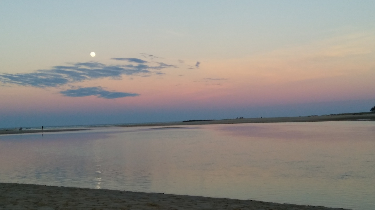 번다버그 엘리엇 해드비치의 석양과 달의 조우.