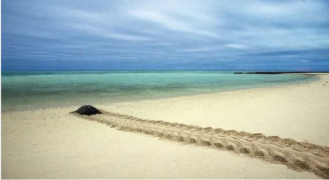 번다버그 몬레포 해변에 알을 낳고 다시 바다로 나아가는 어미 거북의 거룩한 본능.