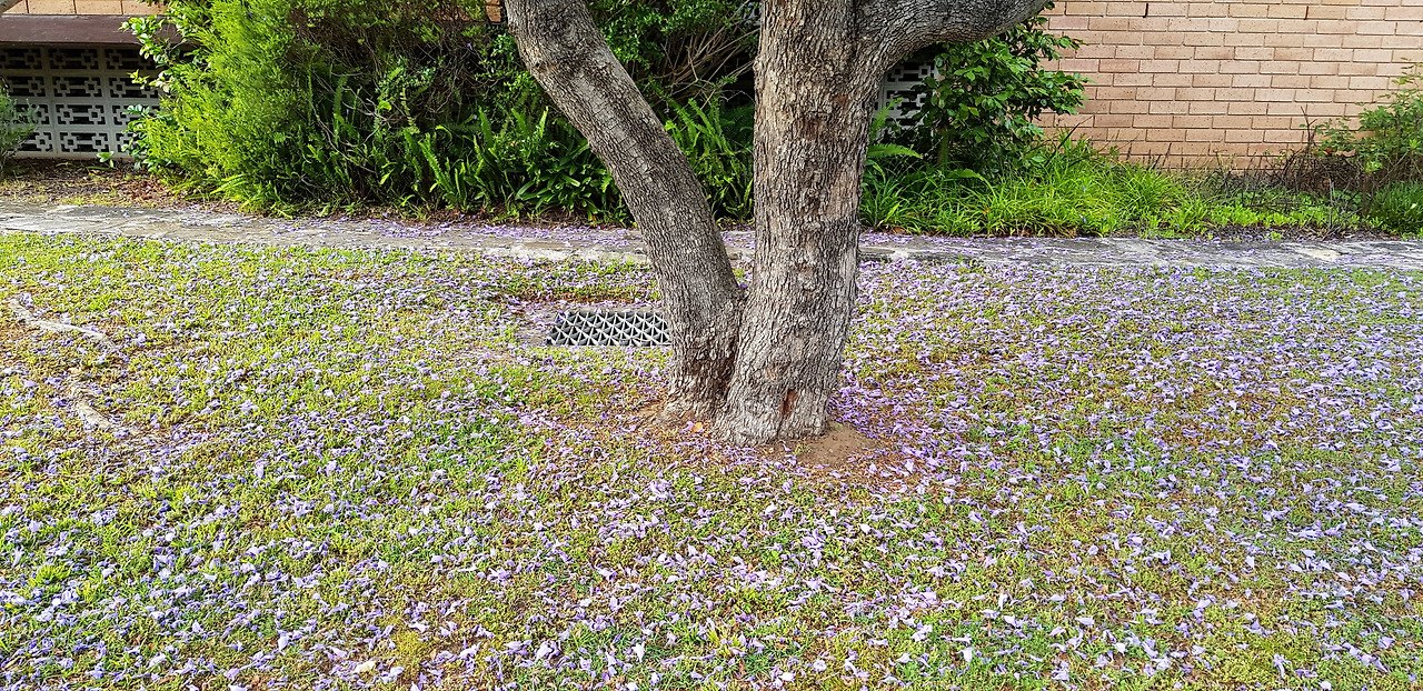 가로수로 서 있는 보랏빛 자카랜다 꽃잎이 투둑 눈물처럼 떨어지고 있었다.