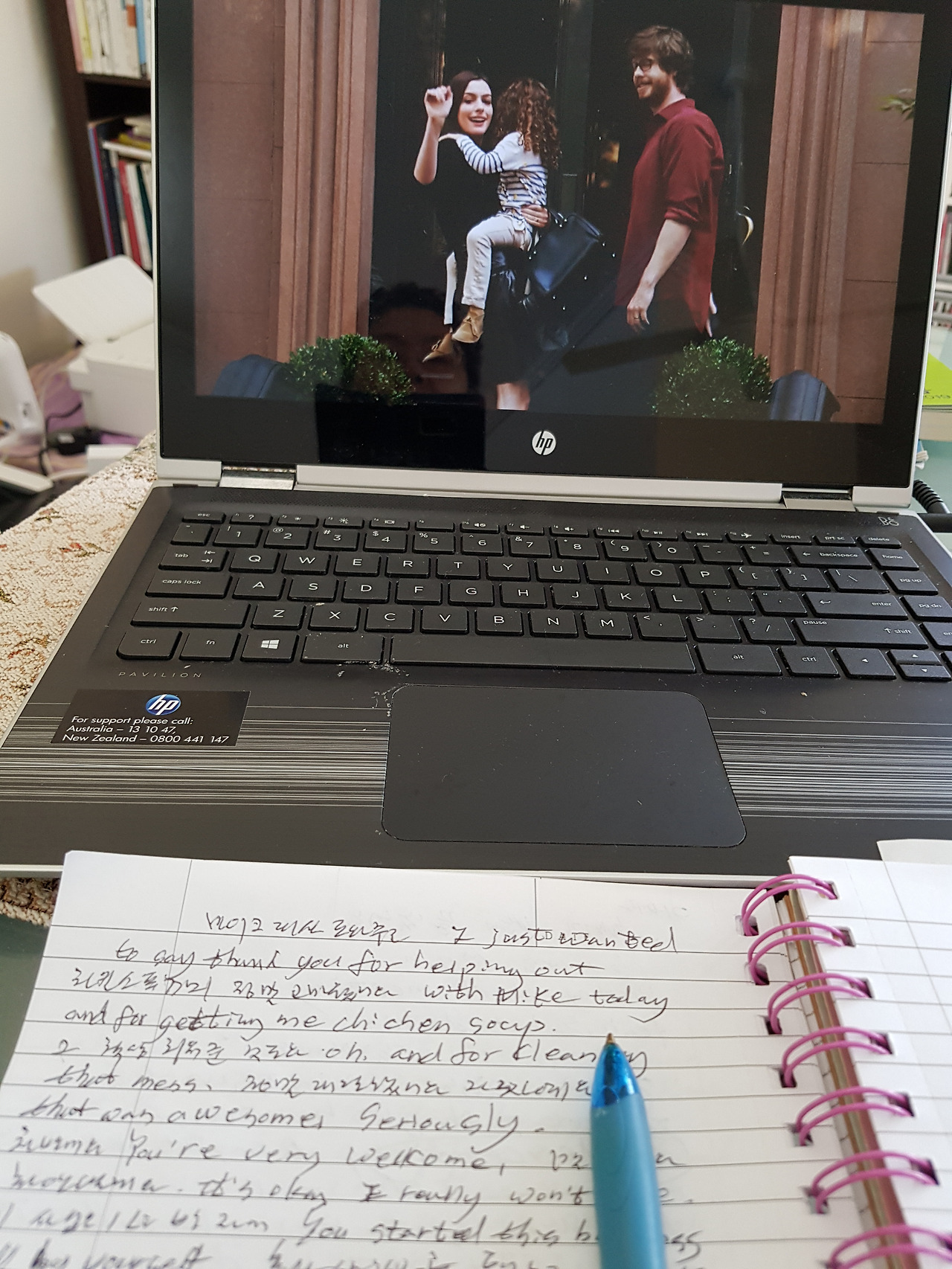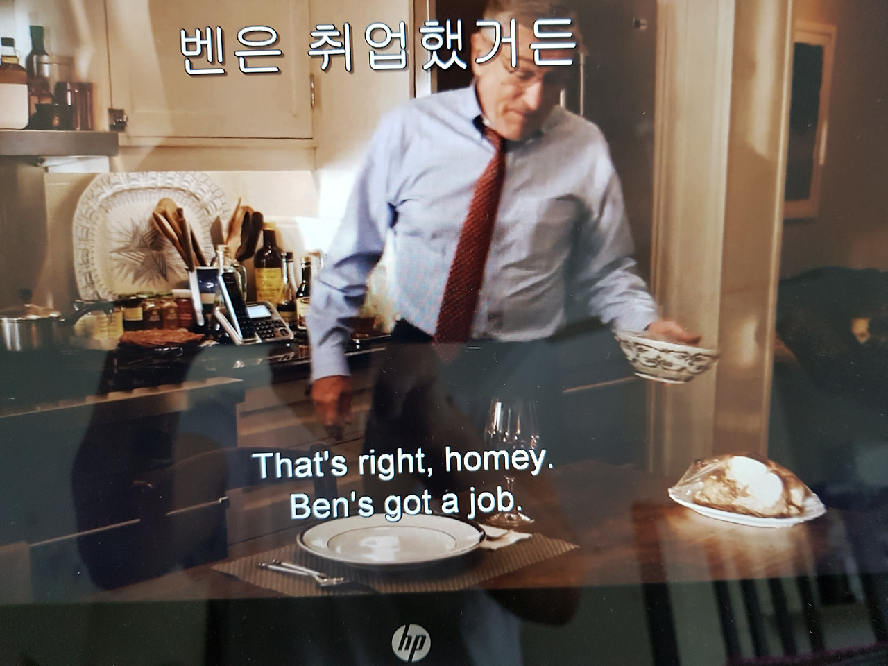 남편은 자고, 줄스는 TV를 끄고 업무용 노트북을 켠다. 남편 : 잠시 눈을 뜬다. 깨서 기다리려고 했어. 줄스 : 알아. 미안해. 저기서 자서. 그냥 곯아 떨여졌어. 어른끼리 대화할 시간을 가지려 하는 것 알아. 넷플릭스 볼까?