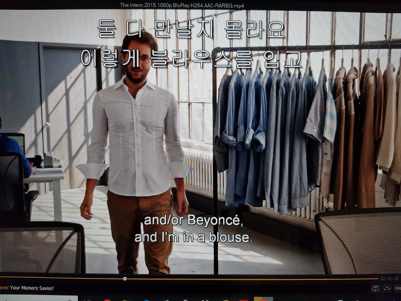 벤 : 그래도 멋지게 차려입으면 좋지. 루이스. 저기 선방에 가서 맞는 셔츠를 찾아봐. 머리도 좀 빗고. 셔츠는 바지 안에 넣어. 왜 요즘은 다 빼고 다니는지 몰라. 그저 부탁하는 거야, 루이스.