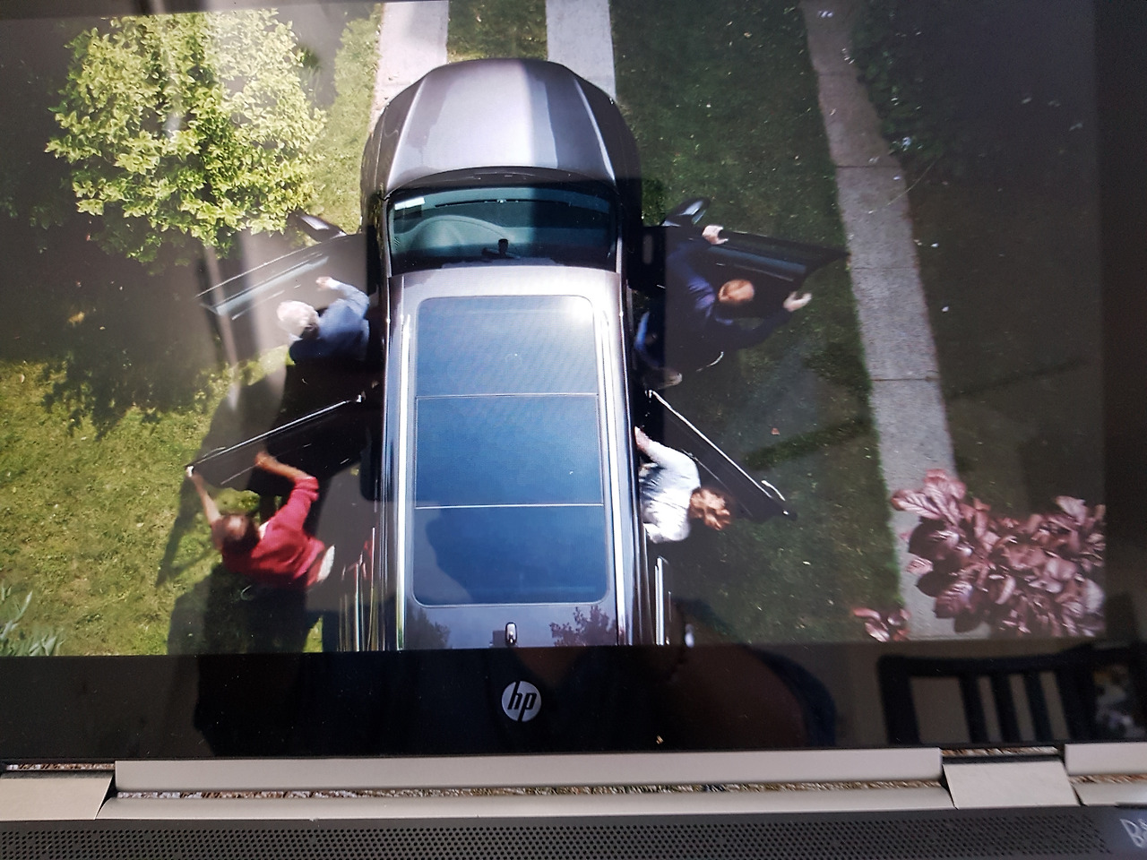 남자 셋 모두 2층에서 쏜살처럼 뛰어 내려온다. 돌팔매처럼 빠르게 후다닥 차로 몰려온다.