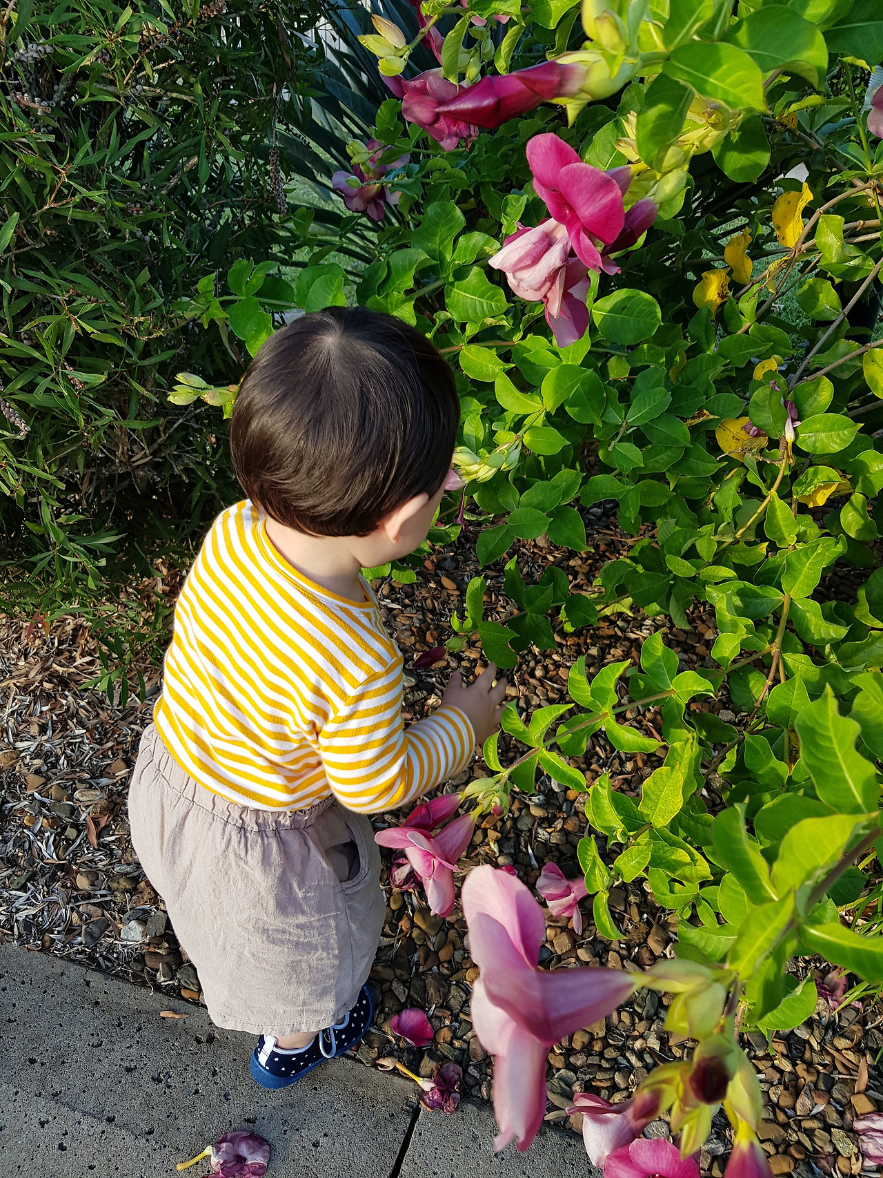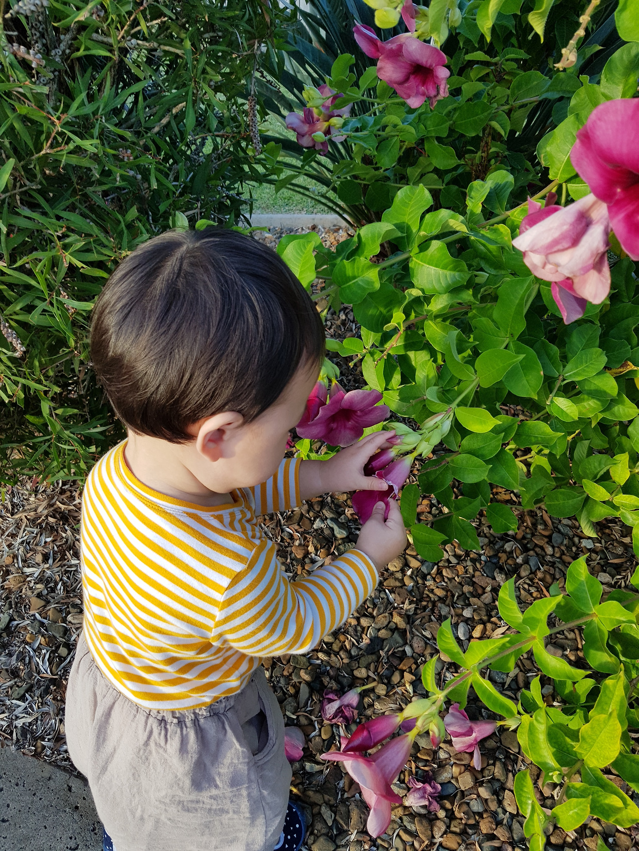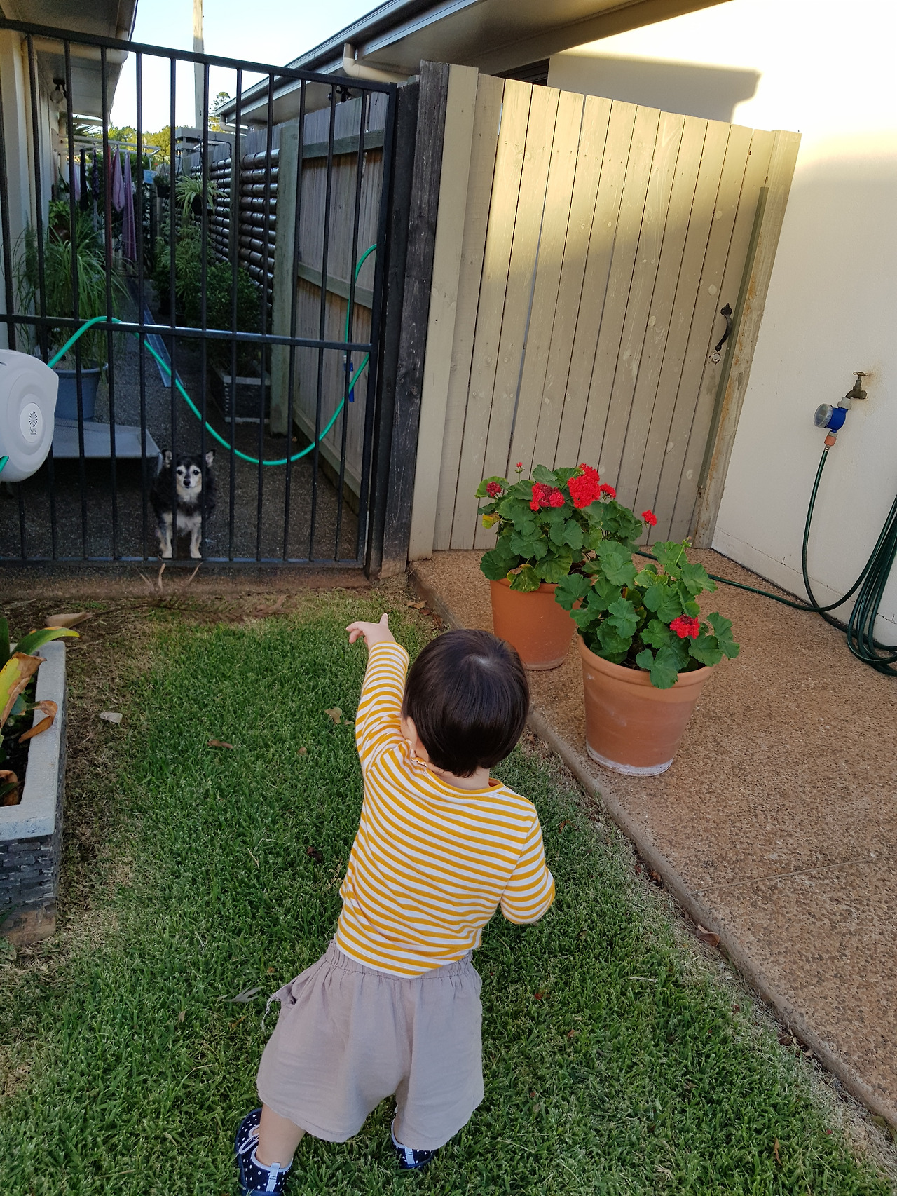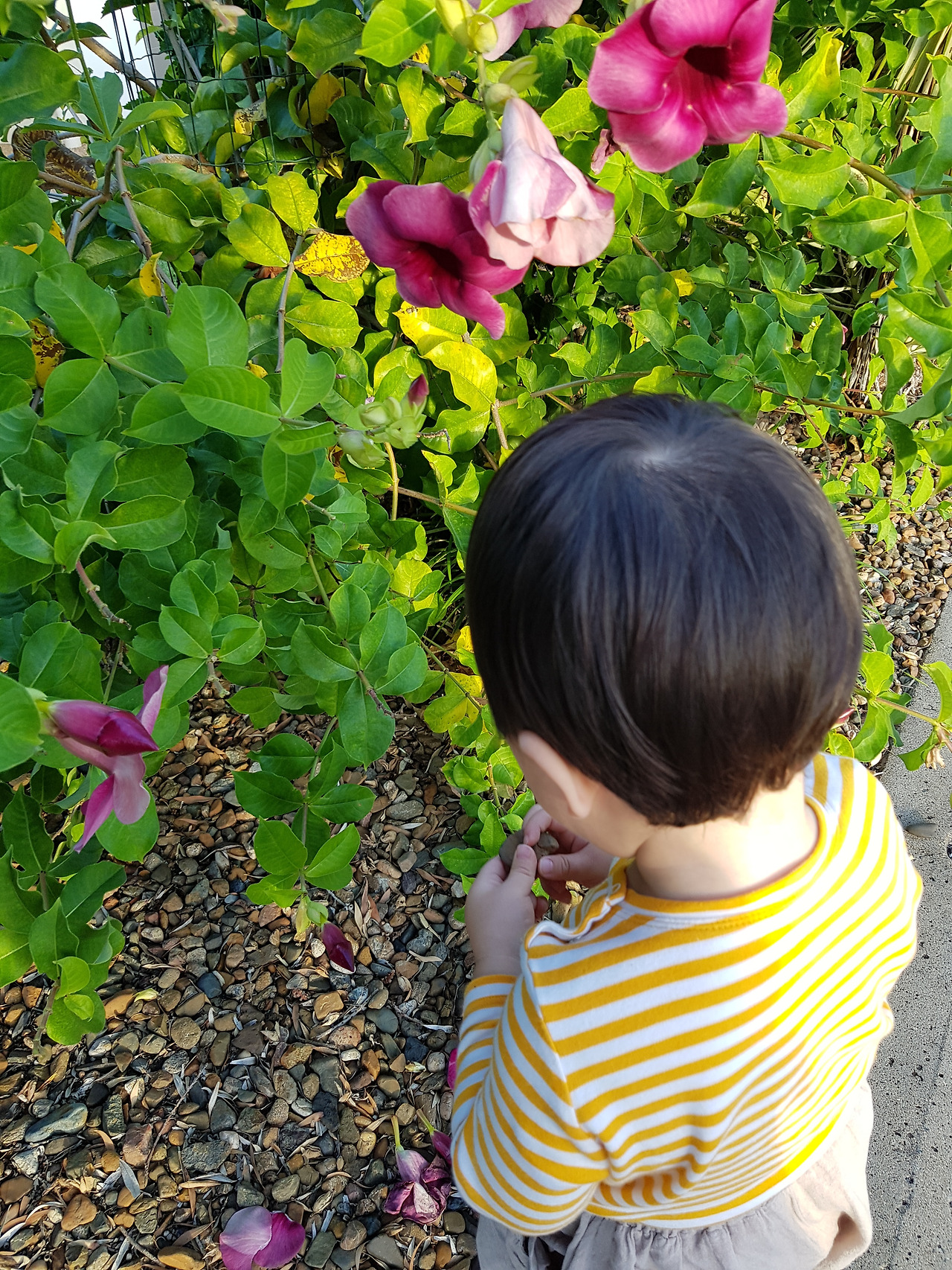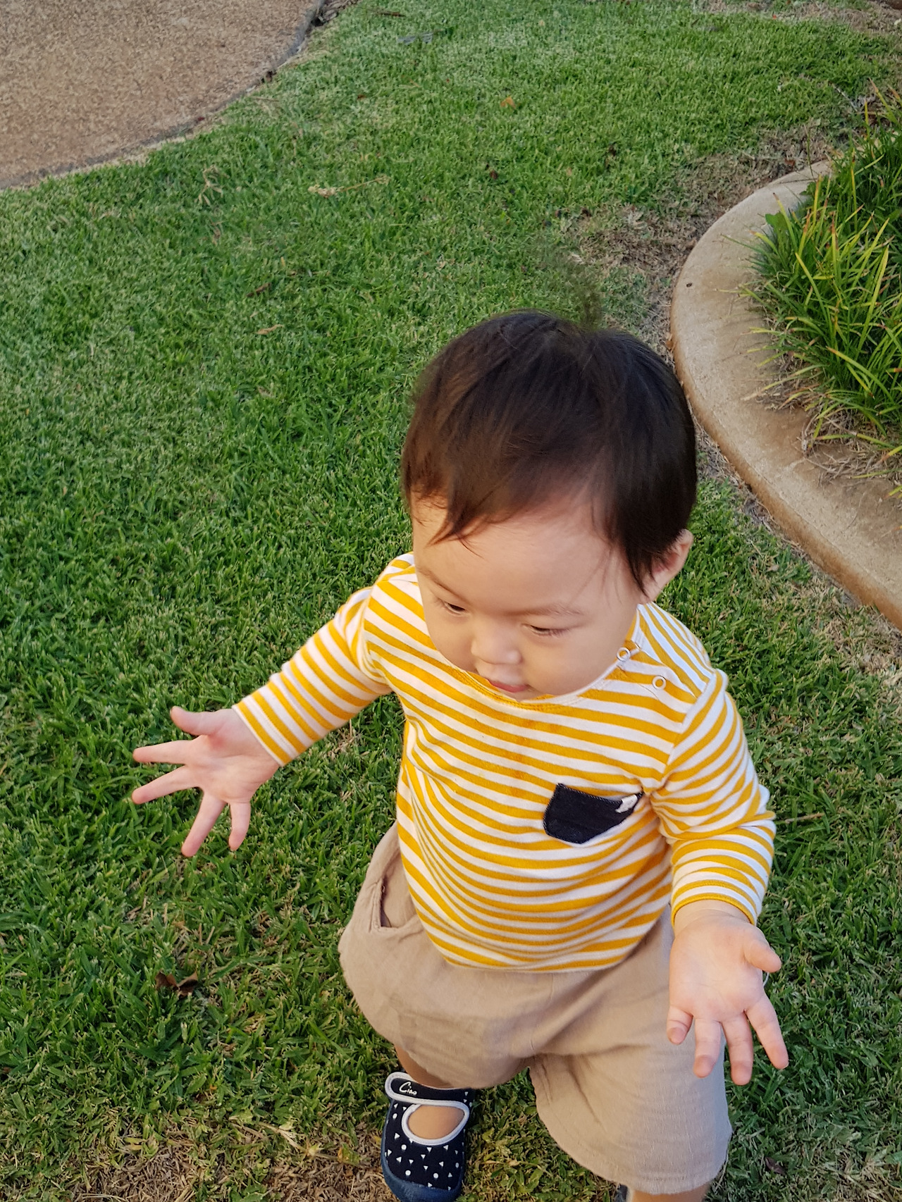 할미는 재영이를 데리고 꽃밭을 보여주러 나갔다. 새소리도 들려주었다. 꽃을 보고 쪼물쪼물 손바닥을 반갑게 펼치며 기뻐하는 재영이. 공중의 새를 보고 팔을 들어 올려 다다다다 거리며 뒤뚱뒤뚱 따라간다.