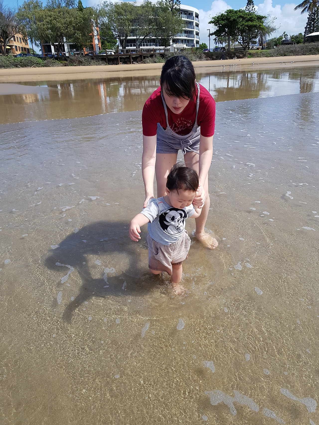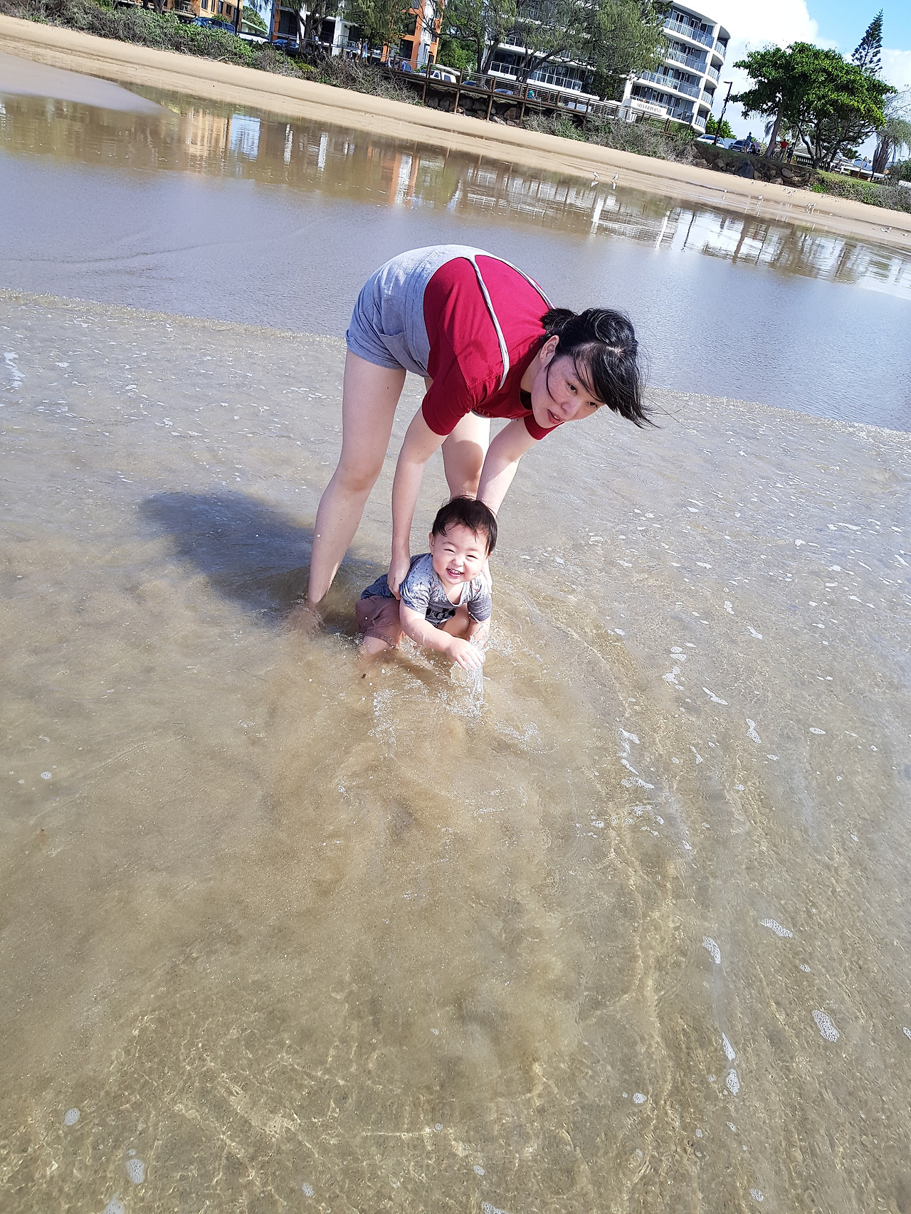 "엄마, 오늘 시어머님이랑 바다에 갔는데 재영이가 한 번 놀아봐서 그런지, 옴청 잘 놀더라."