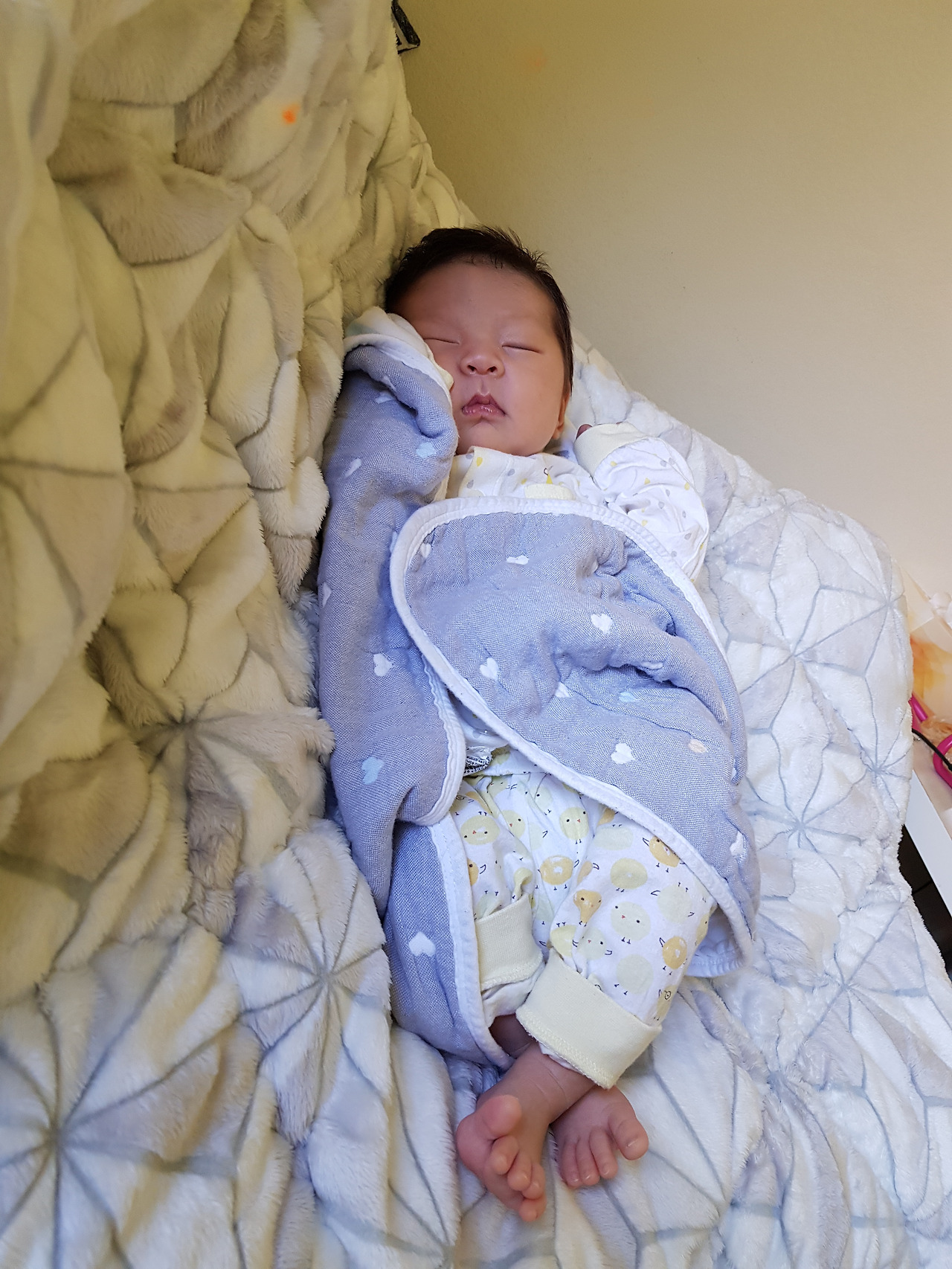 재영에미 나가기 전에 재윤이에게 젖을 물리고, 할미가 받아 안아 쓰담쓰담 등을 쓰다듬어 트림을 시킨 후, 할미 방 포근한 이불 위에다 아기를 사르르 눕혀 재웠다. 방안 공기가 거칠면 아기가 깰 새라 토닥토닥 사랑손으로 두드려 재운 지 두어 시간 지났다.