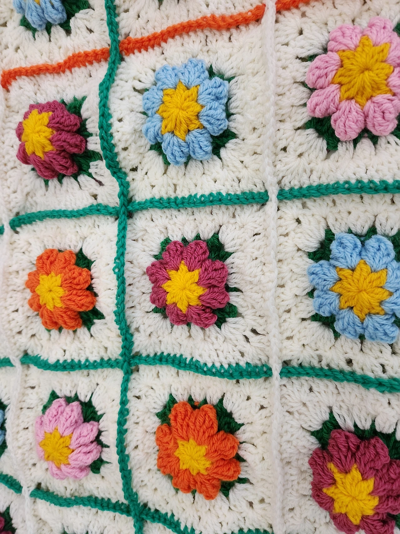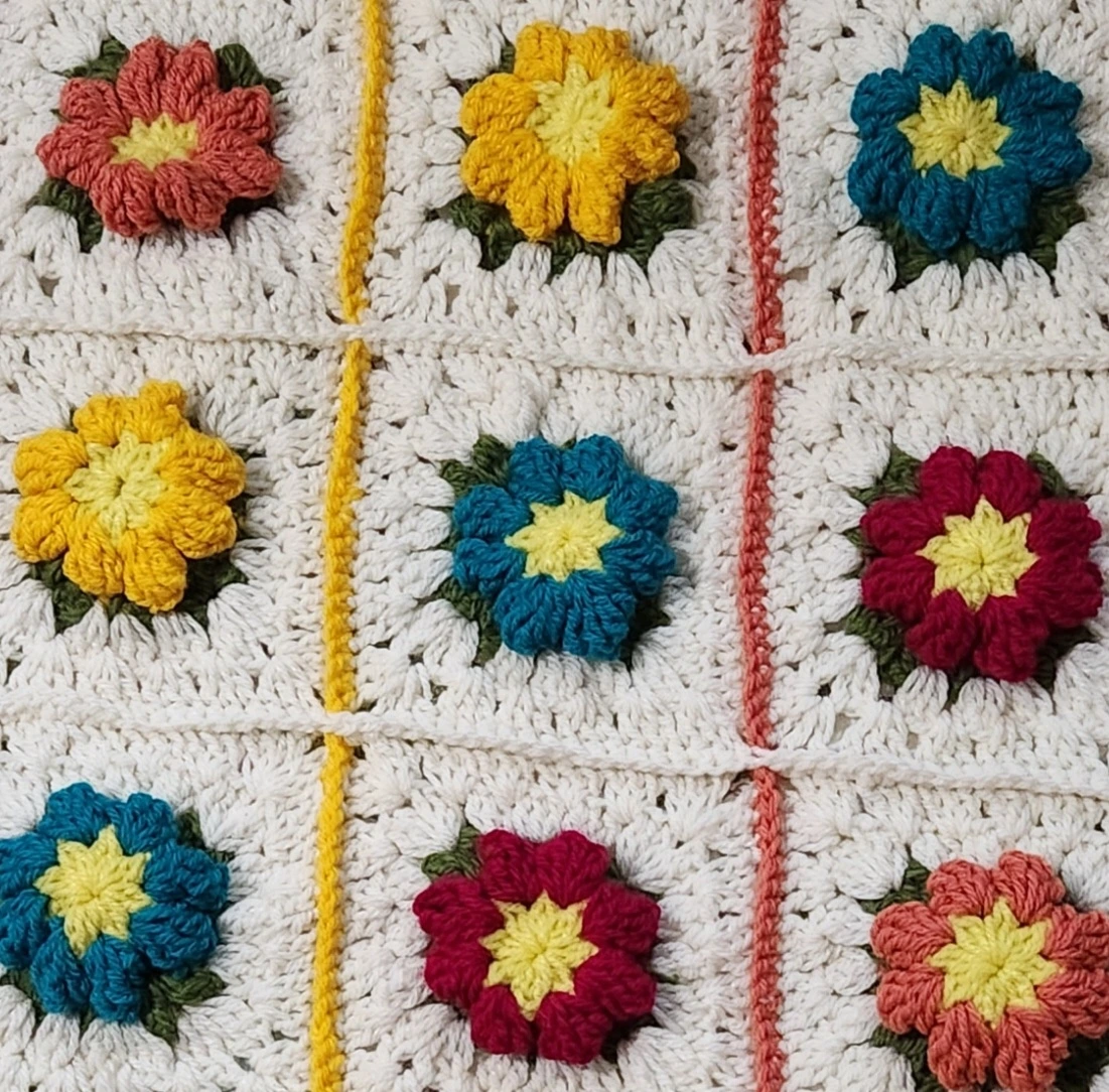 라플 상품으로 정한 이불편물. 56개의 꽃을 떠서 이어 붙여서 이불을 만들었다. 유튜브 "아델 코바늘"에서 배운 솜씨다. 이 무늬를 줄곧 뜨다보니 이제 나의 상표가 된 듯하다.
