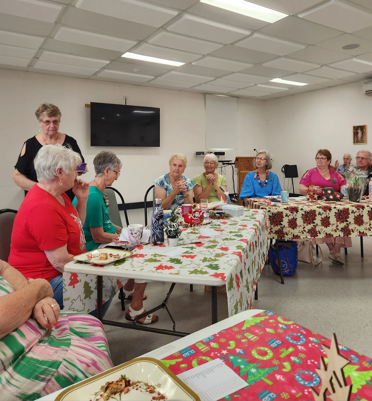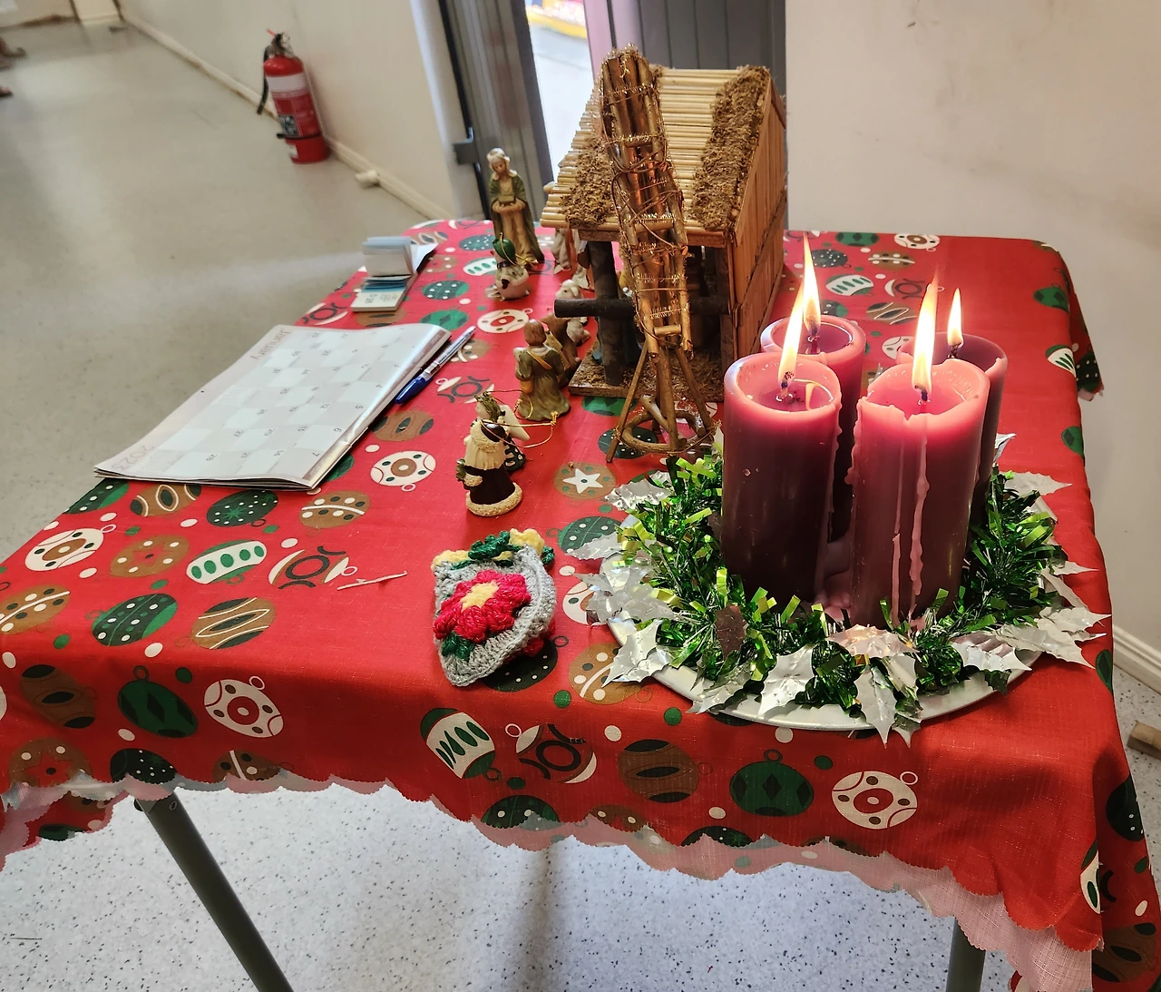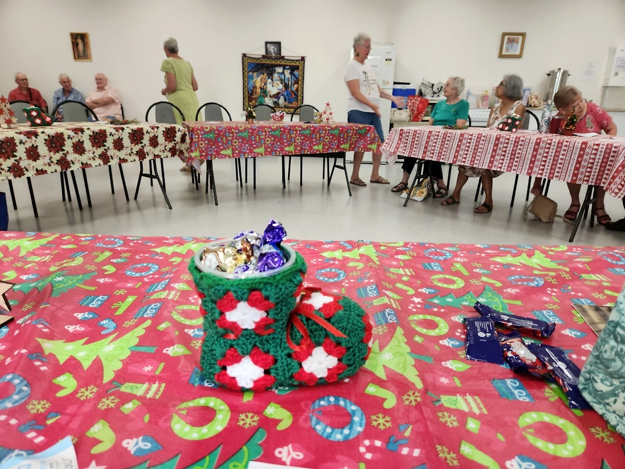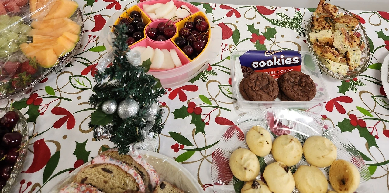아홉 시 반쯤에 가니까 벌써 부지런쟁이 바디스 할머니들이 거의 다 모여 있었다. 회색 교실을 알록달록 아름답게 장식을 해놓았다. 입구엔 크리스마스 캔들까지 분위기를 띠고, 탁자와 할머니들 옷도 평소보다 신경을 쓴 티가 확연했다. 할머니들 웃음소리는 언제나 부드럽고 정답다. 그래서 할머니들하고 있으면 마음이 편안하다.