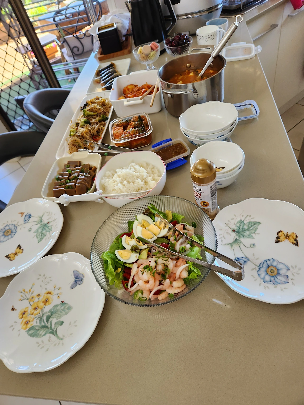 우린 뷔페처럼 각자의 쟁반에 음식을 덜어가서 식탁에 둘러앉아 나머지 회포를 다시 풀어놓았다. 아, 그들은 내가 조촐하게 차린 코리언 푸드사진과 사람들을 먼저 찰칵찰칵, 찍었다.