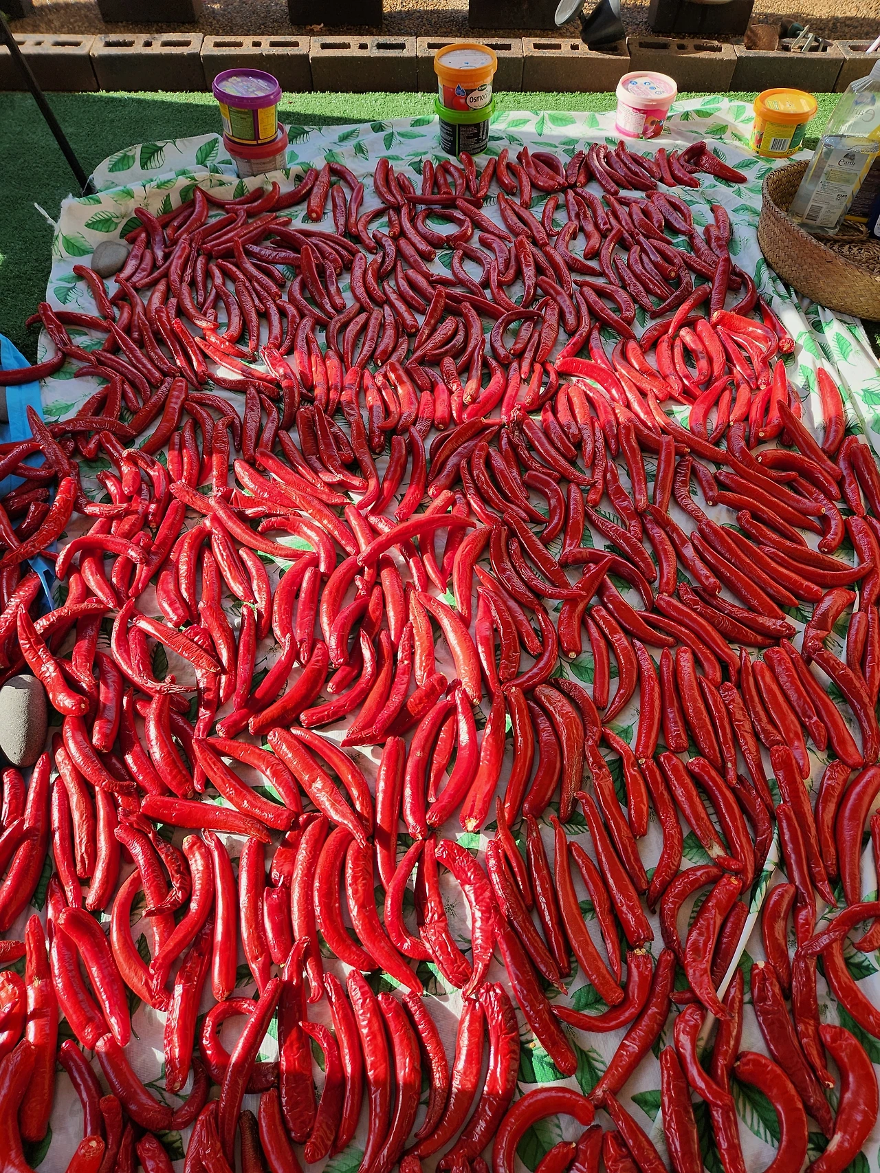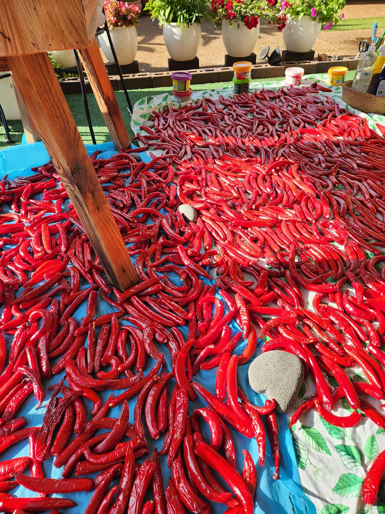 내가 앉아있던 자리에 고추를 하나하나 정성스레 눕혀주었다. 색 곱고 착하게 잘 마르라고.