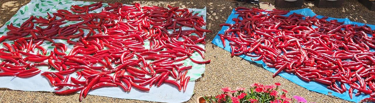 기껏해야 어제 반나절과 오늘 하루밖에 못 말렸는데, 내일부터 50% ~60% 비소식이 있다. 태양초 고추는 중간에 비가 오면 속이 썩어 버리기 십상인데 걱정이 태산이다.